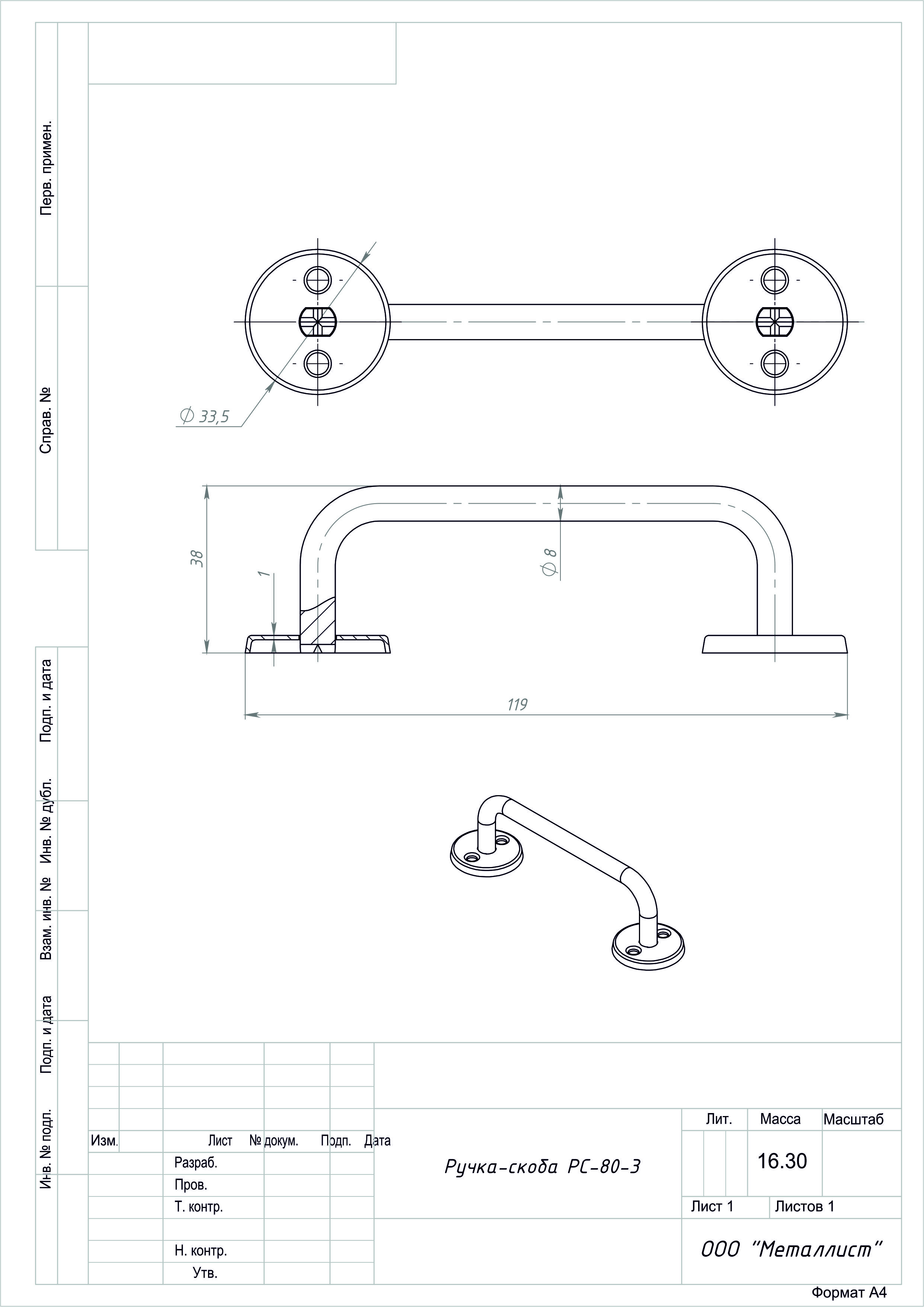 Ручка скоба РС-80-3 пол.белый г.Кунгур (80)