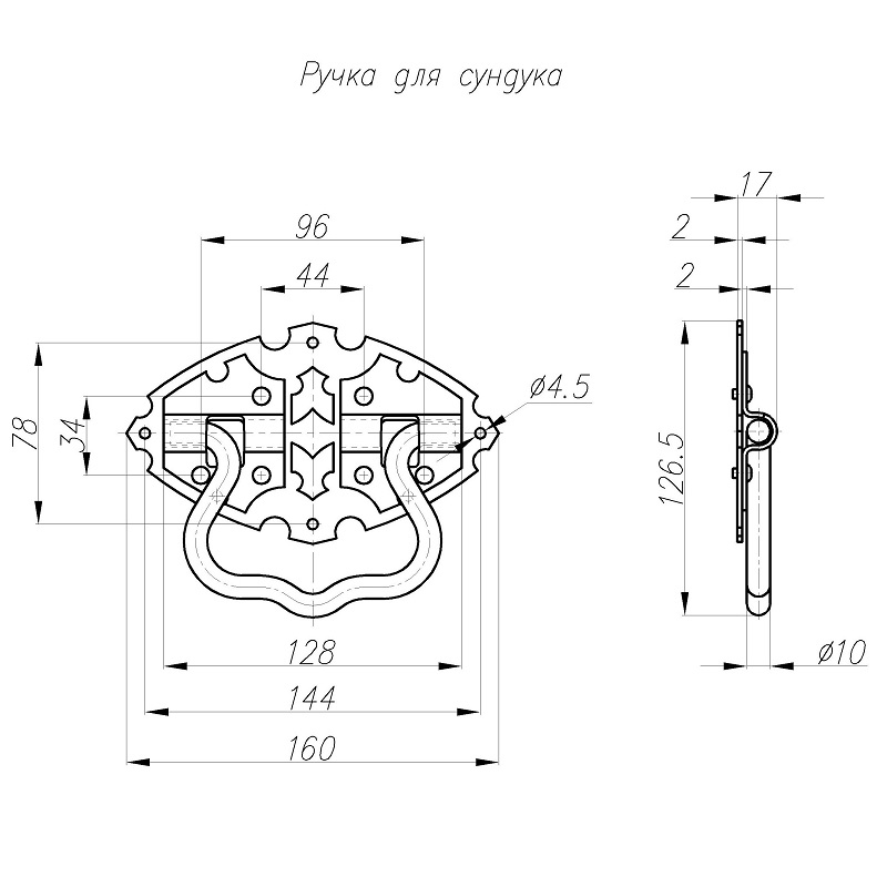 Ручка сундука РС- 160мм откидная черный матовый НОЭЗ (10)