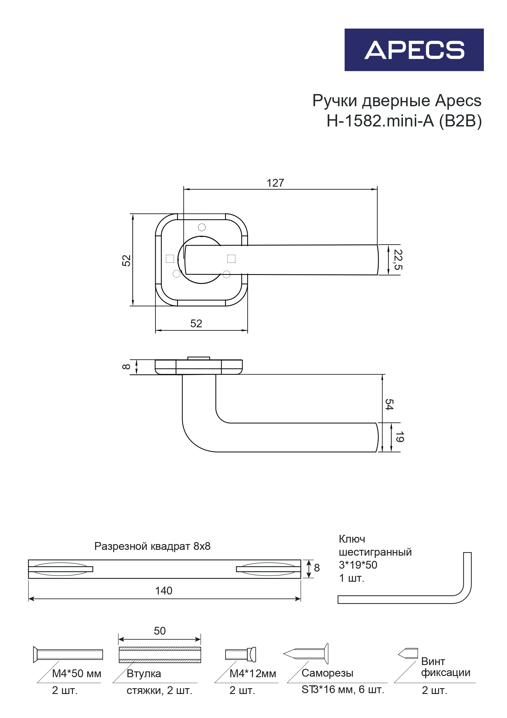 Ручки Apecs 15 серии выполнены на современном квадратном основании. Рекомендованы для установки на входные двери с толщиной дверного полотна 50 - 90 мм.