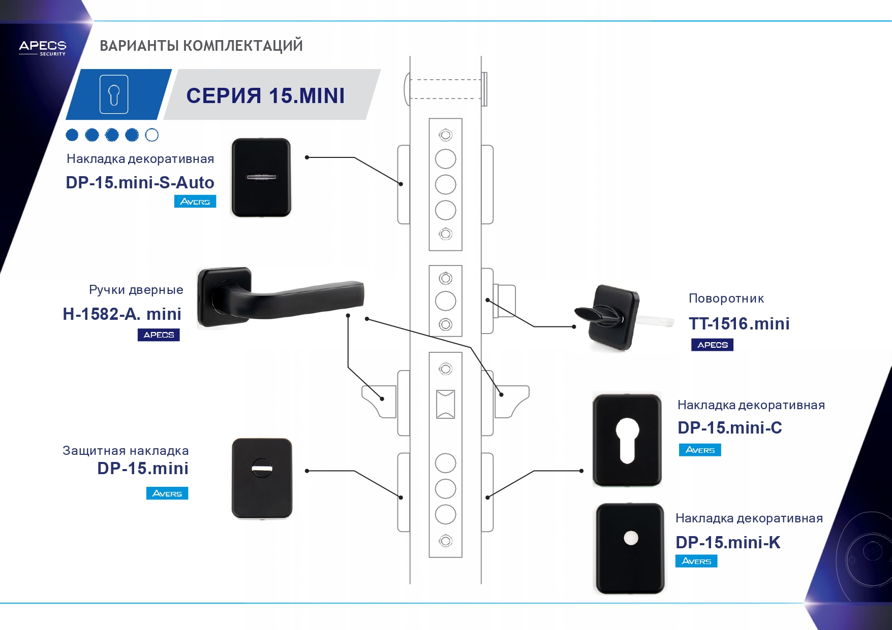 - для ручек 1582.mini необходимо использовать фурнитуру с соответствующим обозначением mini (поворотник 1516.mini, накладке декоративые Avers серии 15.mini)