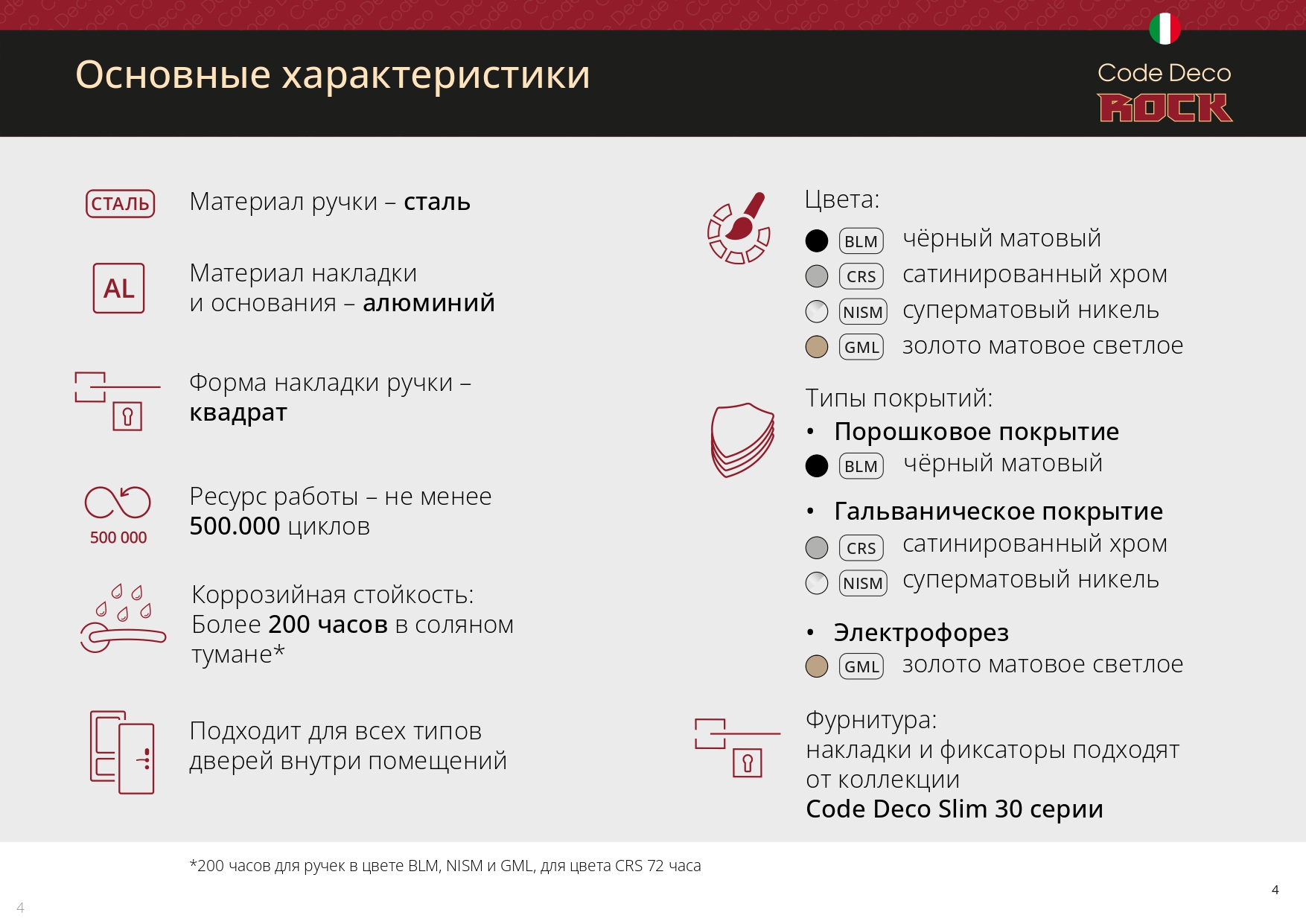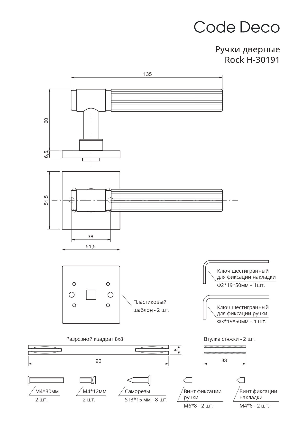 Ручки Code Deco 30 серия Rock - стальные ручки на тонком квадратном основании для межкомнатных дверей.
