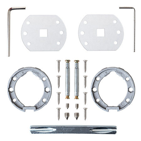 Тип крепежа Стяжки M4 12(33)30 - 2 шт, саморезы SТ3*15 - 8 шт, винт фиксации - 4 шт, ключ шестигранный - 2 шт.