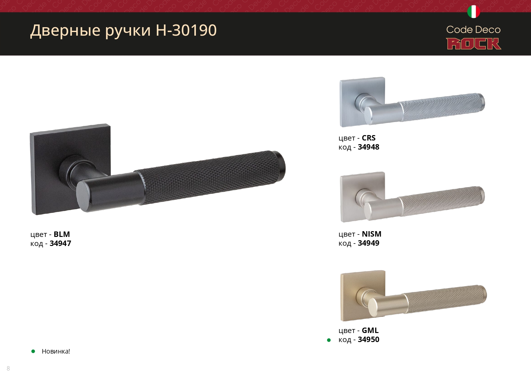 Ручки дверные Code Deco Rock H-30191-S-NISM (1/18)