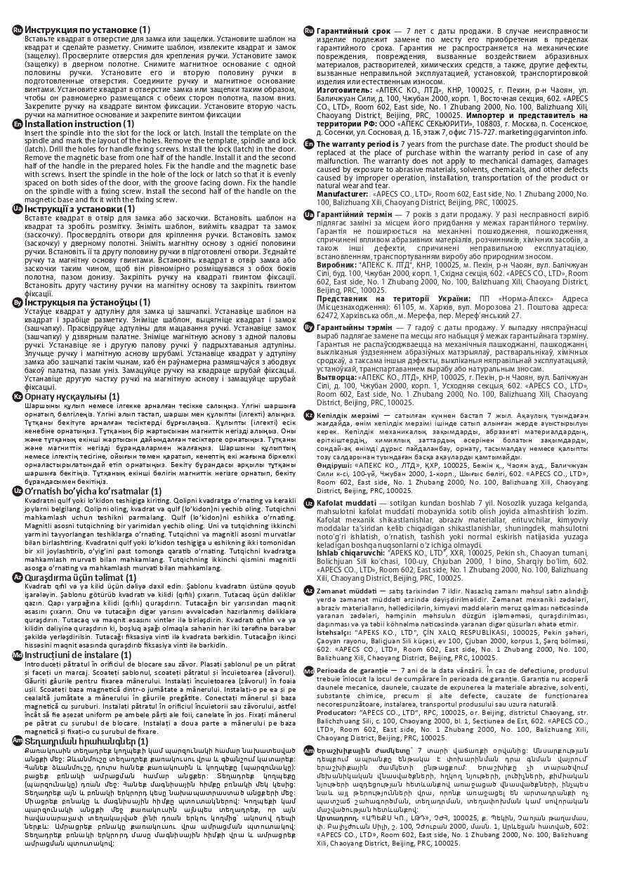 Рекомендованная толщина двери: 40 - 60 мм.