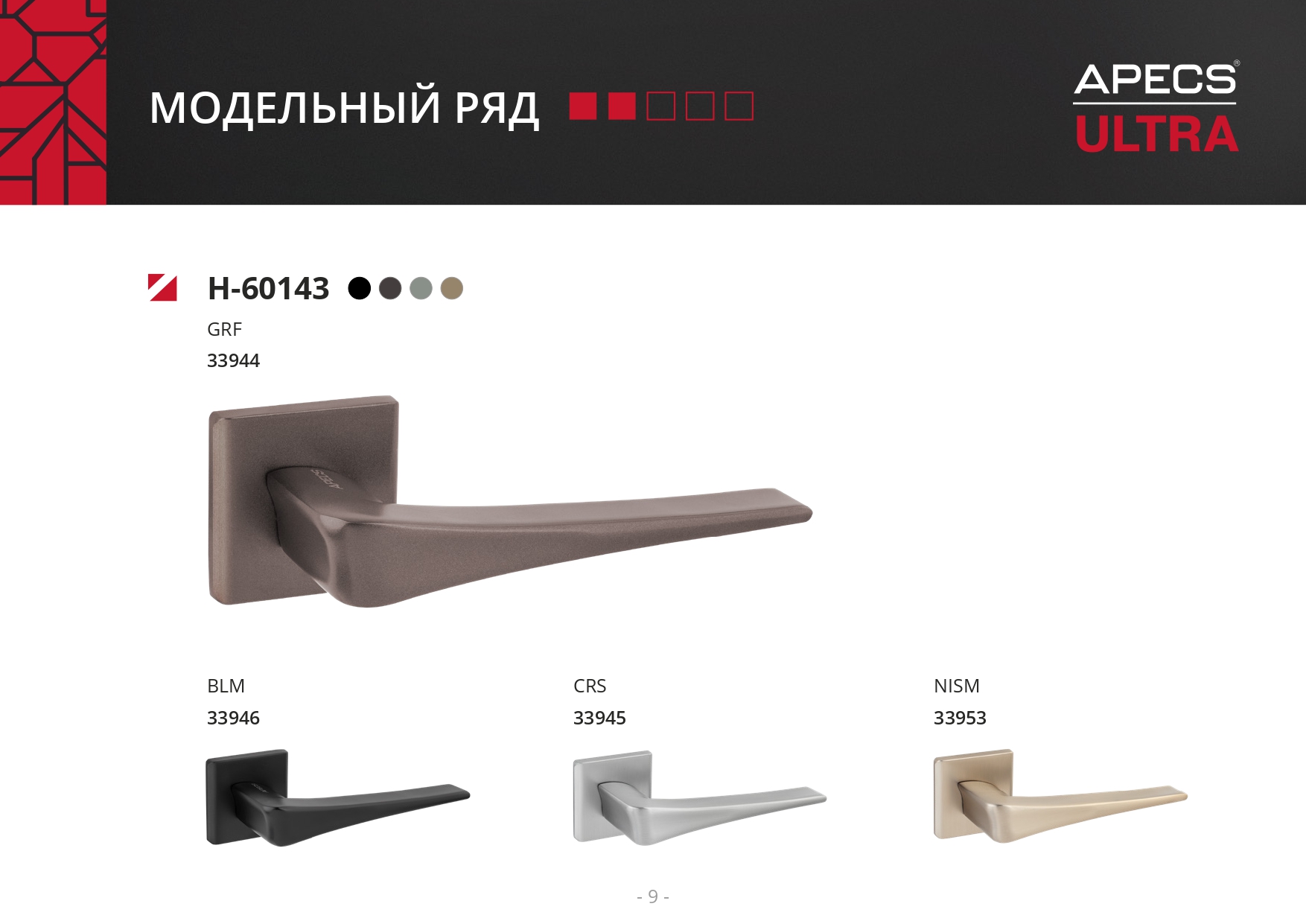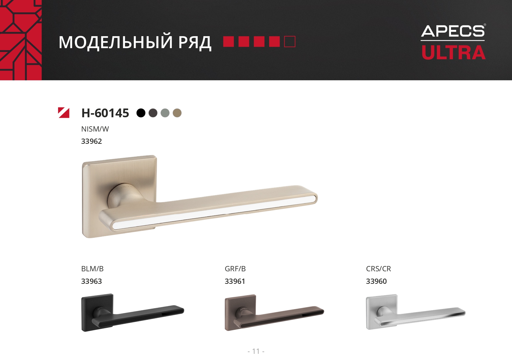Ручки Apecs Ultra 60 серия - алюминиевые ручки на тонком квадратном основании для межкомнатных дверей.