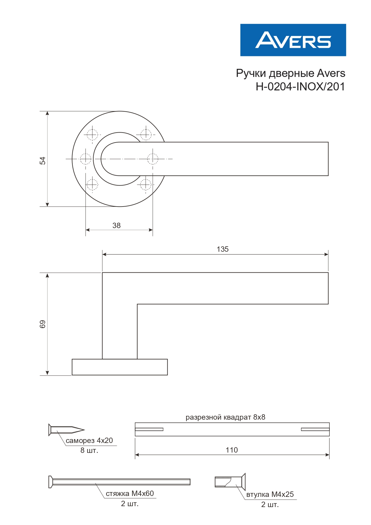 Ручки дверные раздельные Avers H-0204-INOX/201 (нержавейка) (24)