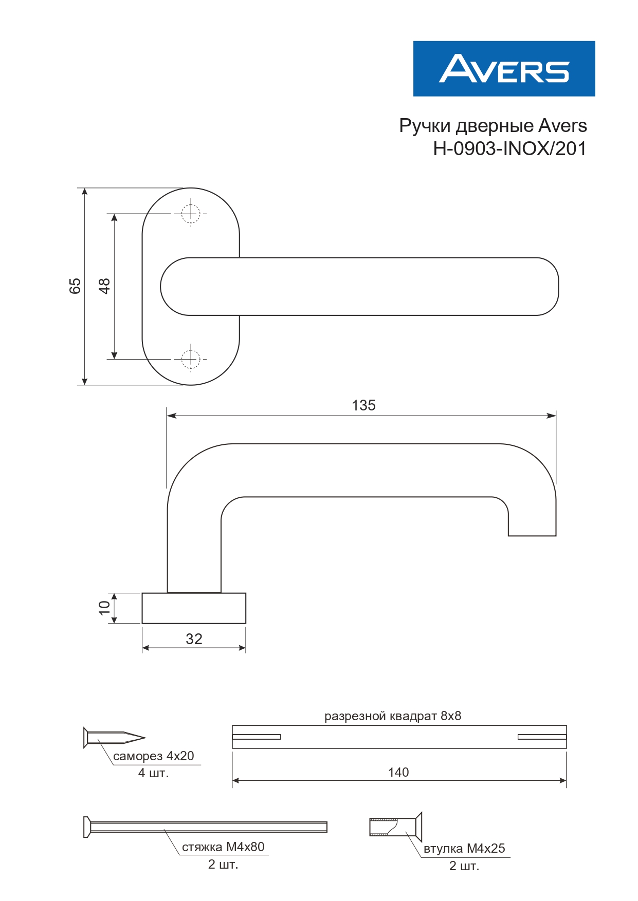 Ручки раздельные Avers H-0903-INOX/201 (нержавейка) (24)