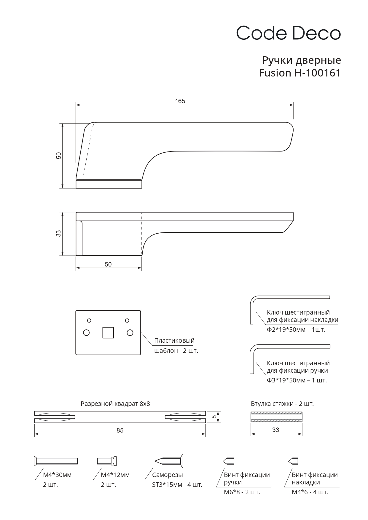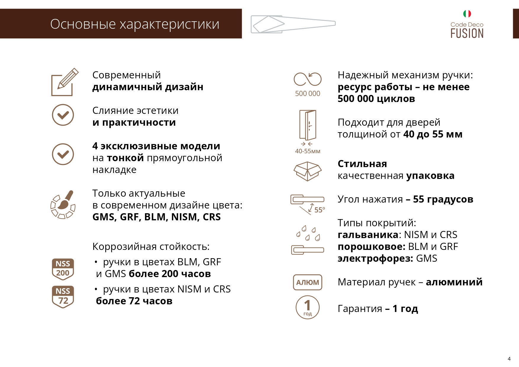 Ручки Code Deco Fusion 100 серия - алюминиевые ручки на тонком прямоугольном основании для межкомнатных дверей.