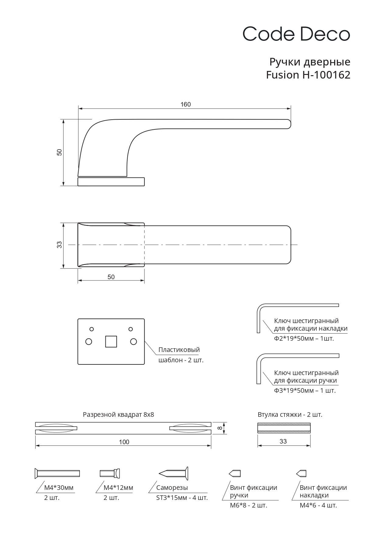 Размер сечения квадрата ручки 8 мм