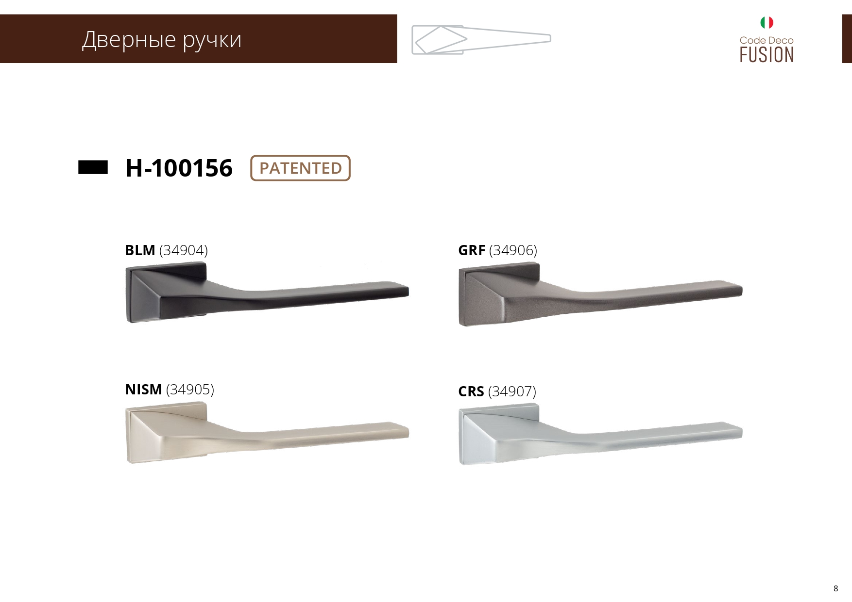 Ручки Code Deco Fusion 100 серия - алюминиевые ручки на тонком прямоугольном основании для межкомнатных дверей.
