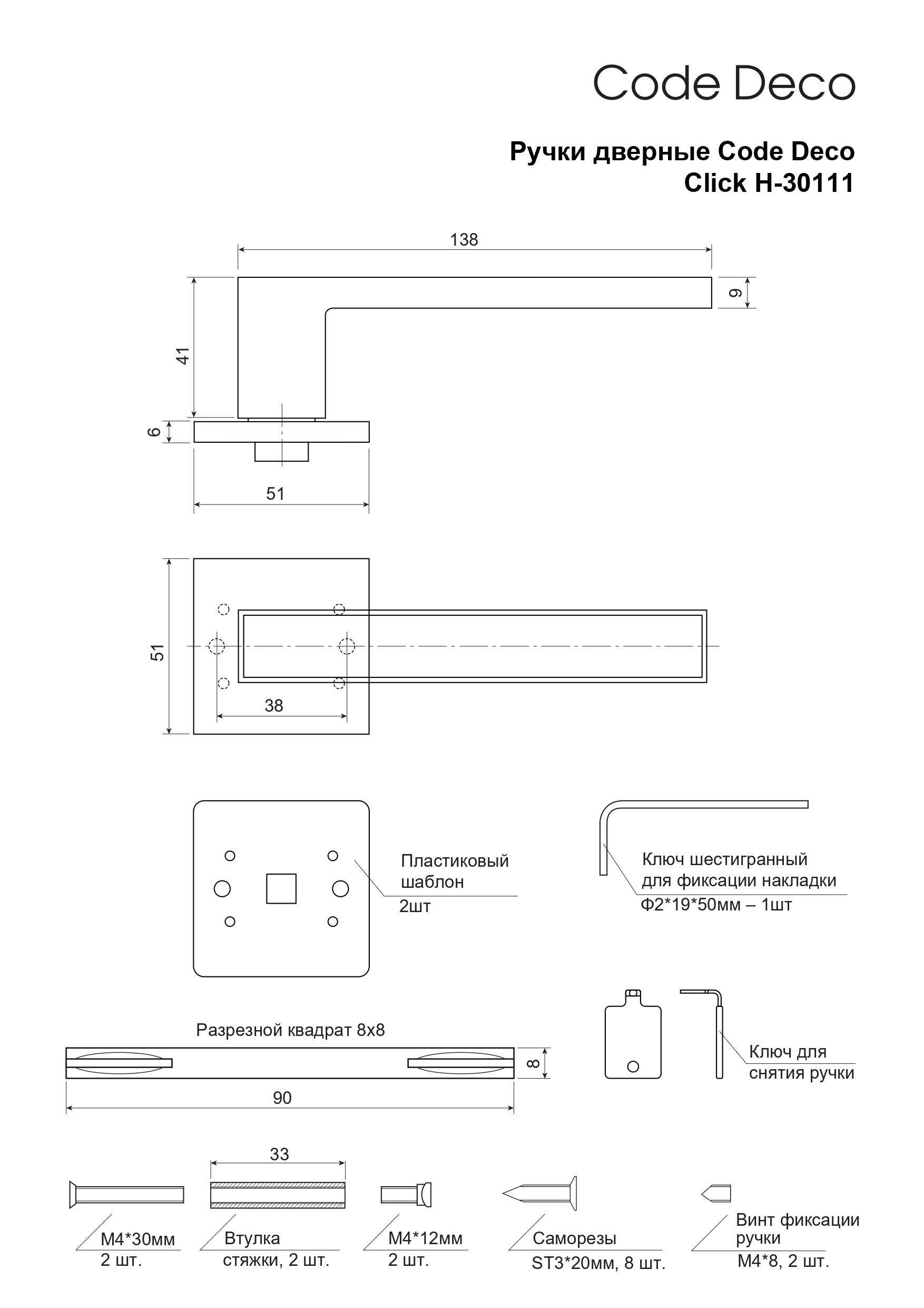 Размер сечения квадрата ручки 8 мм