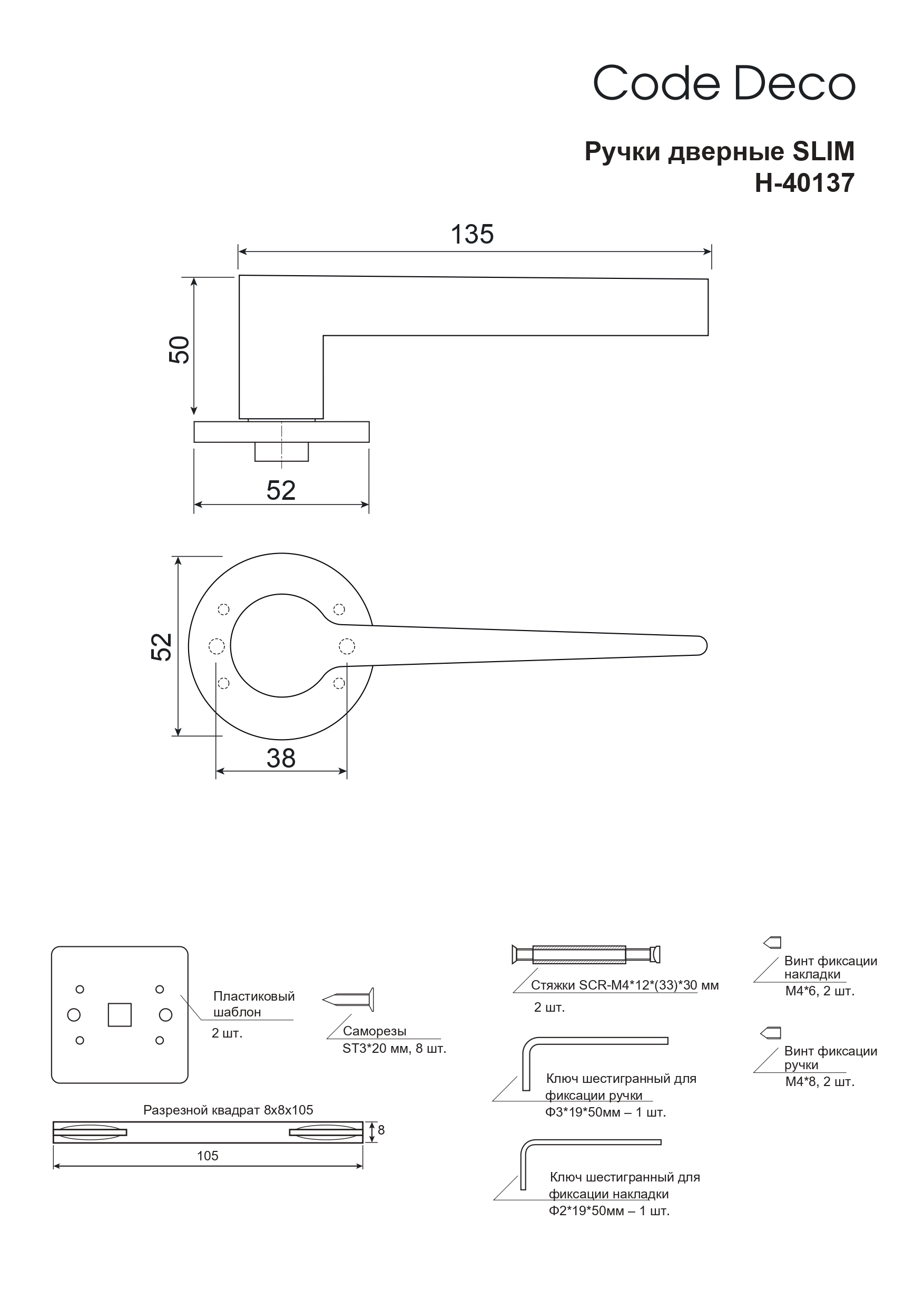 Ручки раздельные CODE DECO Slim H-40137-A-GMS (18)