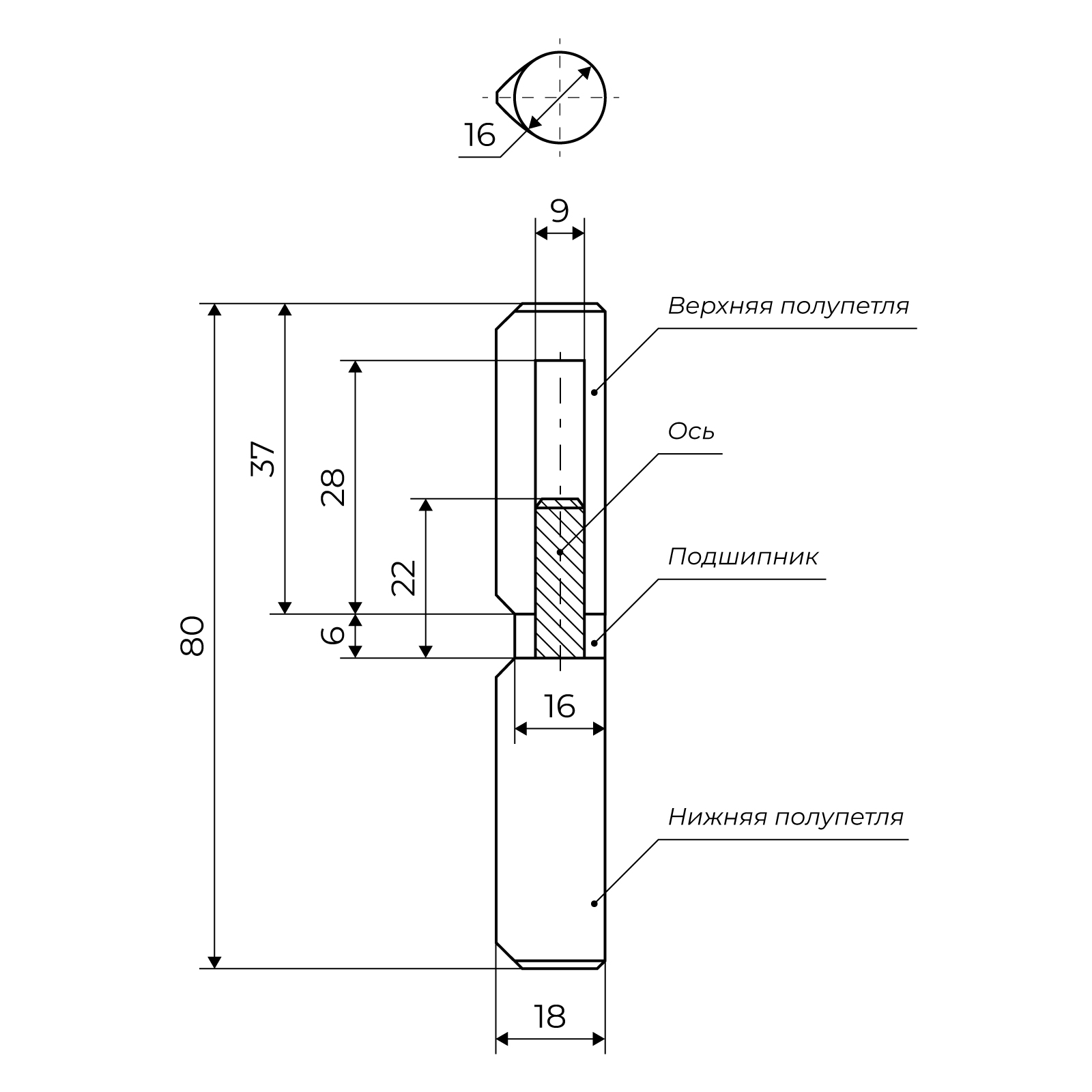 Шарнир капля для металл. дверей 16*80 с подшипником (120)