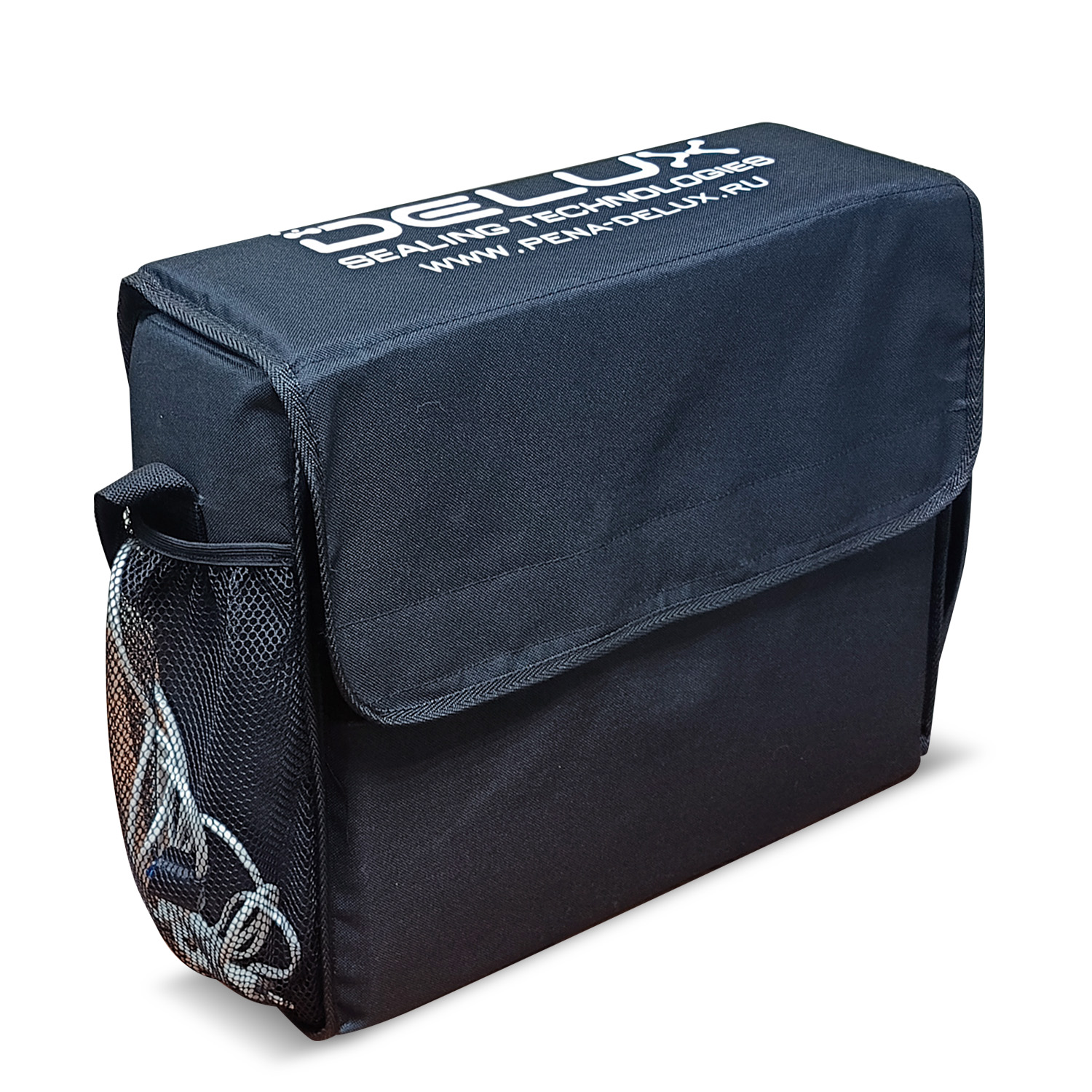Имеется световой индикатор работы (включения) термосумки на верхней части крышки, а также два наружных кармана: один - для хранения провода питания 220В, второй - для переноса одного баллона пены, в т.ч. с накрученным на него пистолетом (при наполнении сумки 12-ю баллонами).