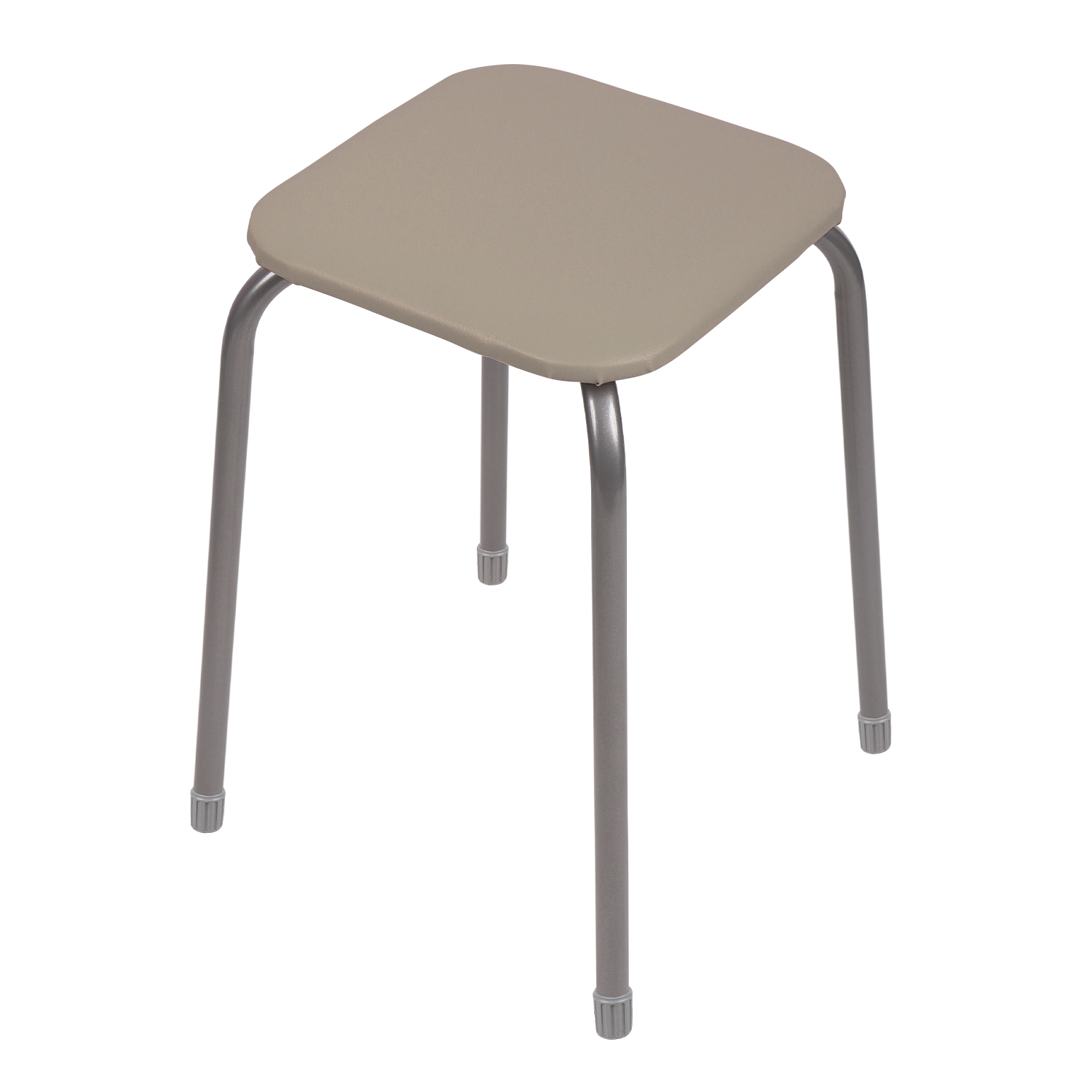Табурет на четырех опорах с мягким сиденьем из винилискожи.
