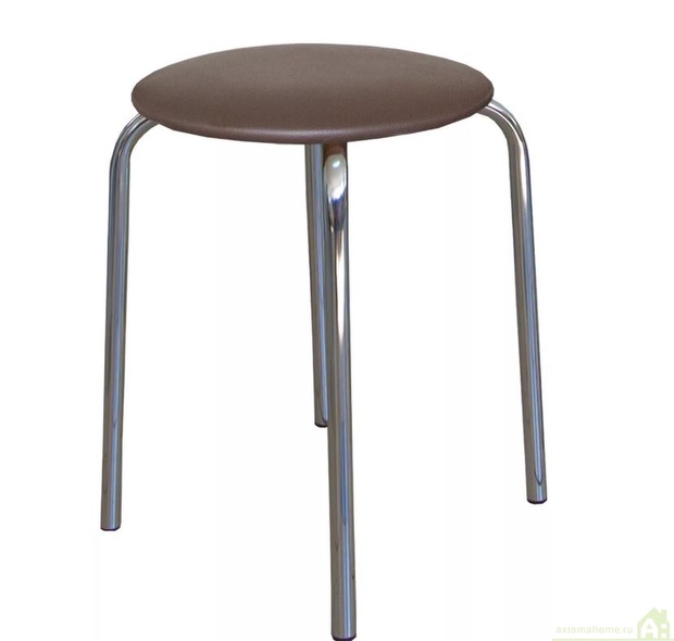 Табурет на четырех опорах с мягким сиденьем из винилискожи. Материал сиденья устойчивый к истиранию и лёгкий в чистке.