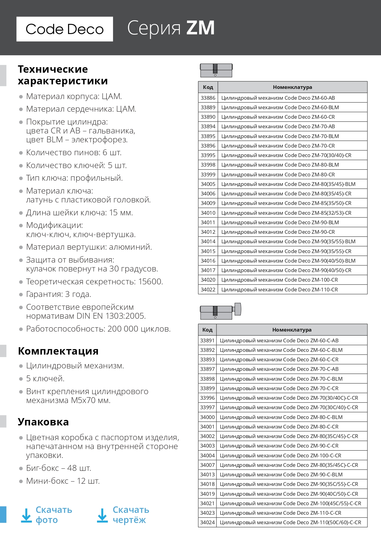 Цилиндровые механизмы Code Deco ZM - цилиндры из ЦАМа, предназначенные для комплектации замков под евроцилиндр 1 класса. Рекомендуются для установки в межкомнатные и входные двери (внутри помещений). Оптимальное предложение для розничных продаж благодаря привлекательной коробке с ложементом.