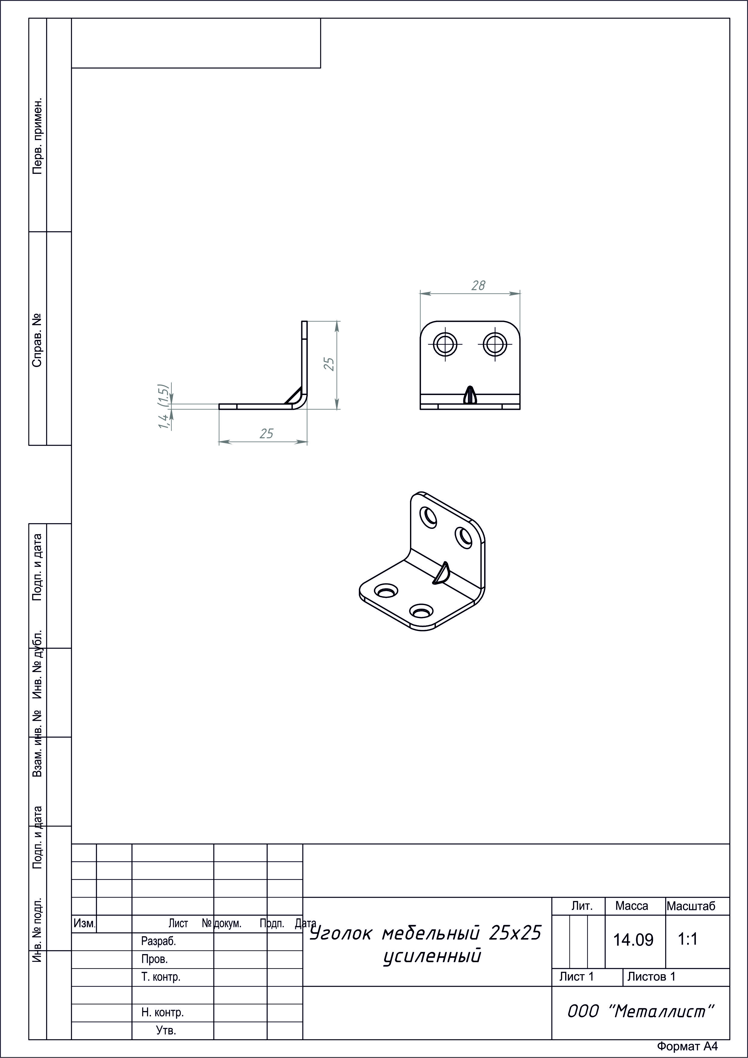 Уголок мебельный 25х25 б/п г.Кунгур (800)