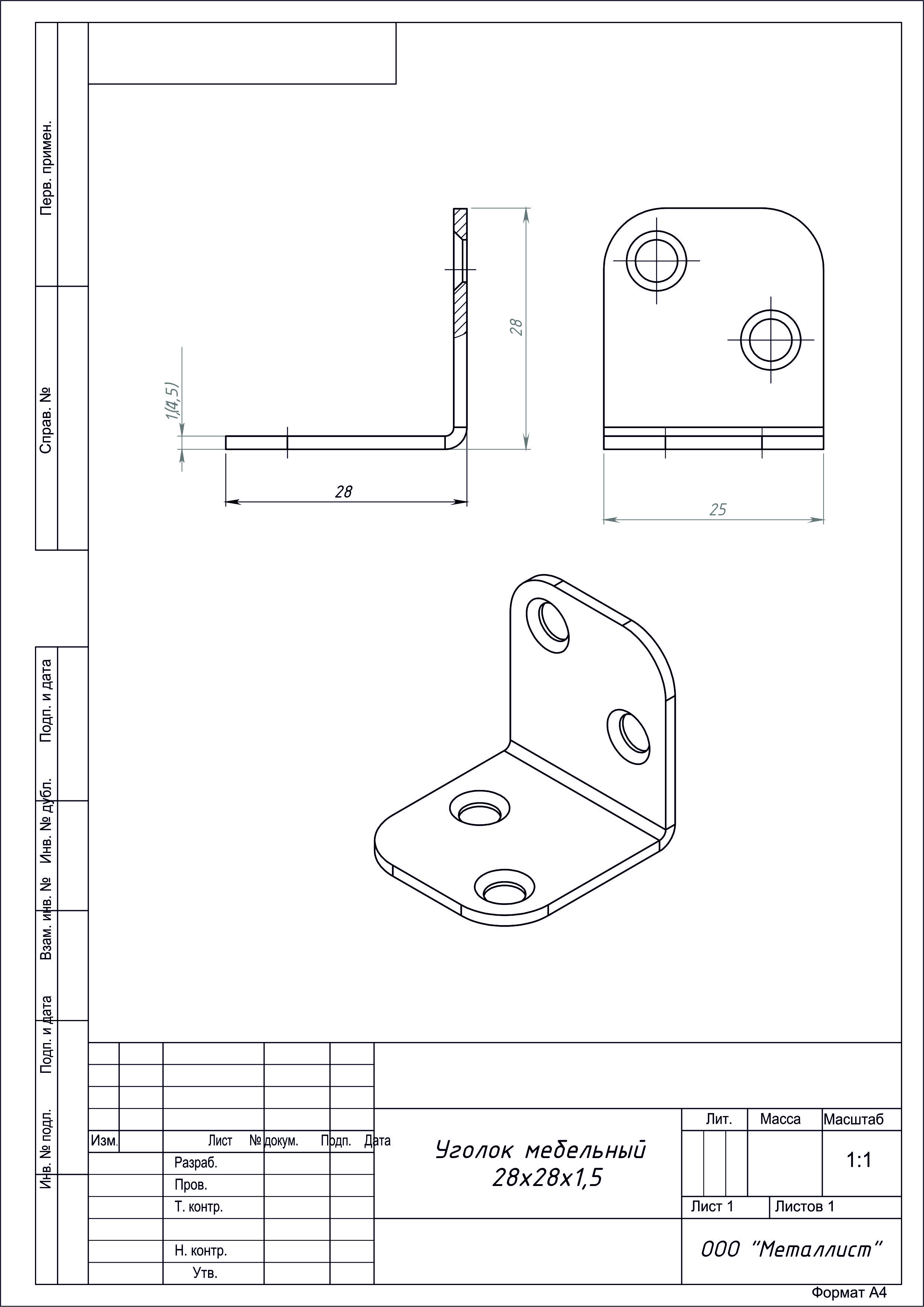 Уголок мебельный 28х28 цинк г.Кунгур (700)