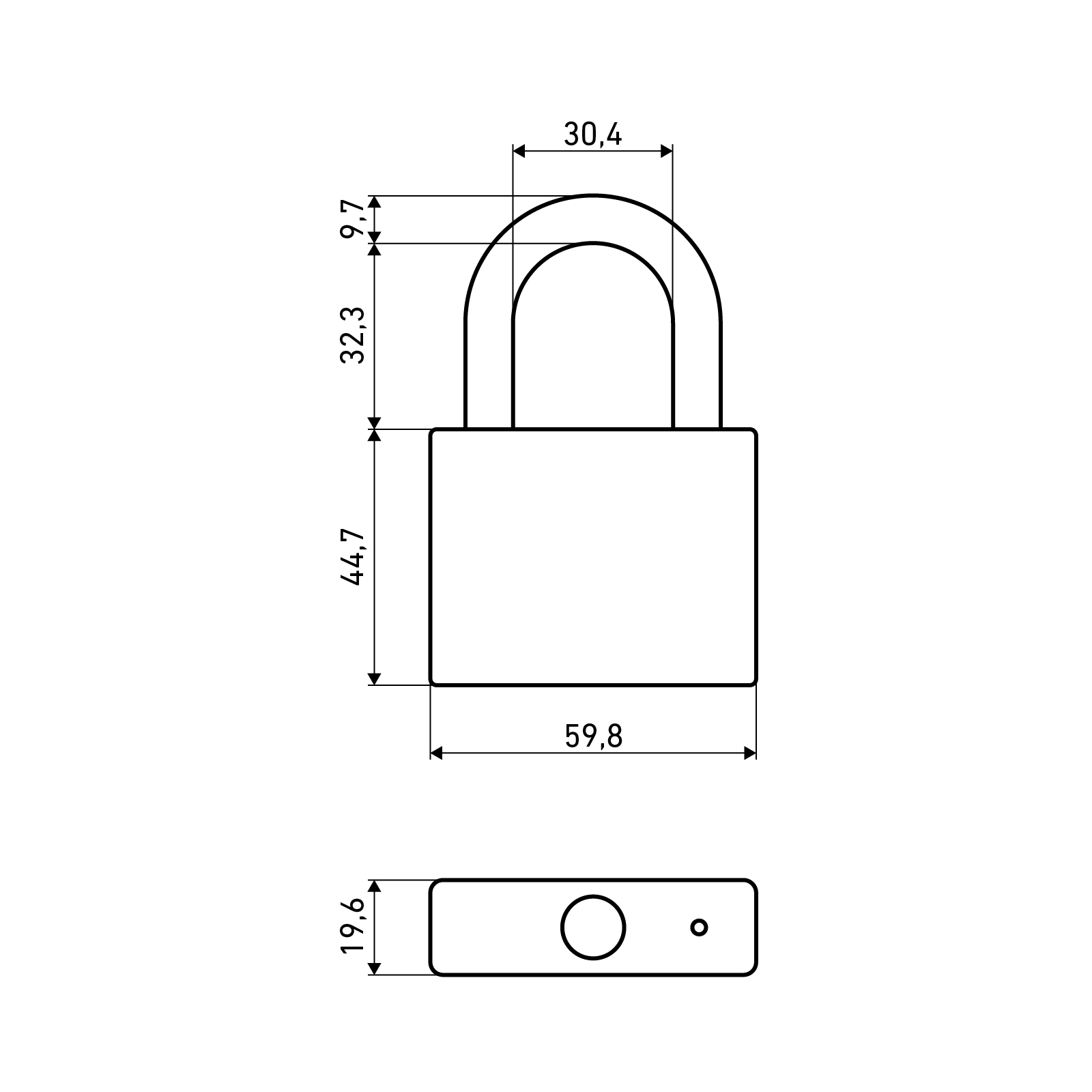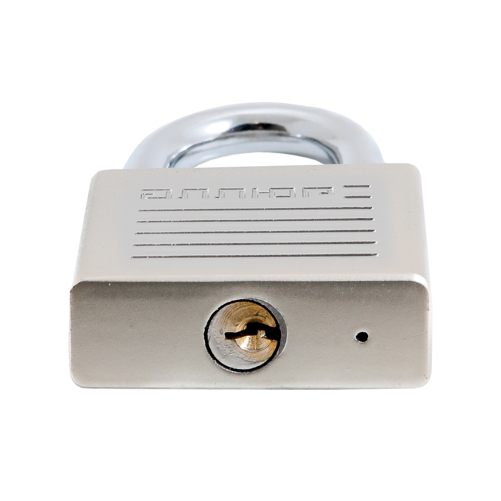 Замок навесной цилиндровый общего применения с классической дужкой. Используются на дверях, оборудованных проушинами. Материал корпуса - чугун. Размер корпуса 59,8х44,7х19,6 мм. В корпусе предусмотрено отверстие для отвода влаги. Стальная закаленная дужка диаметром 9,7 мм., с гальваническим покрытием имеет фиксацию с двух сторон. Проём дужки по высоте: 32,3 мм., проём дужки по ширине: 30,4 мм. Замок запирается автоматически при нажатии на дужку без использования ключа. Замок оснащен латунным цилиндровым механизмом секрета с 4 ключами. Гарантийный срок – 3 года.