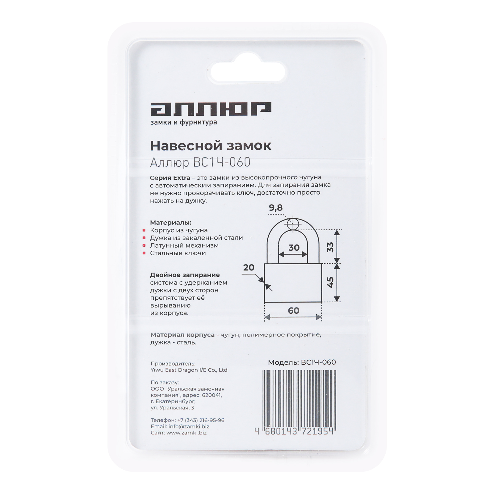 Замок навесной Аллюр EXTRA ВС1Ч-060 (4 ключа) (12/48)
