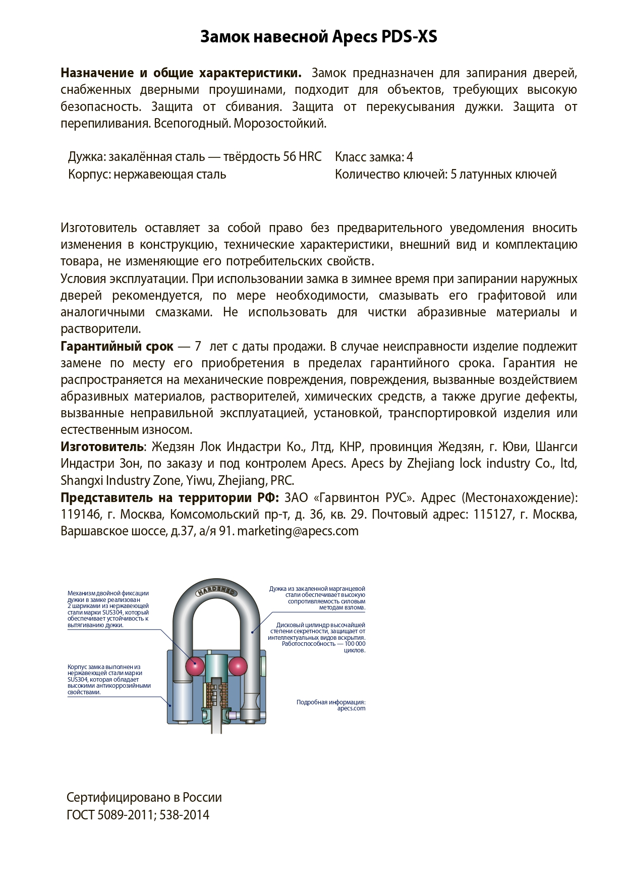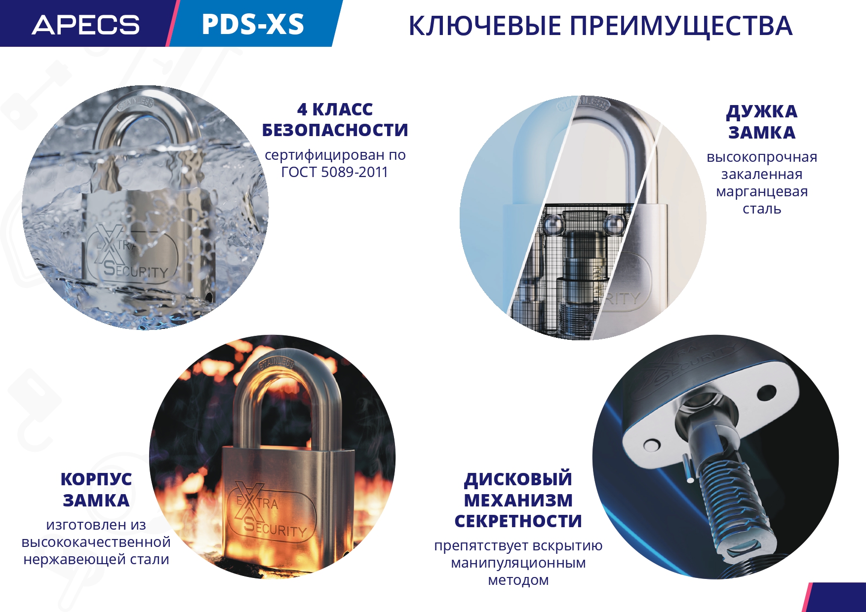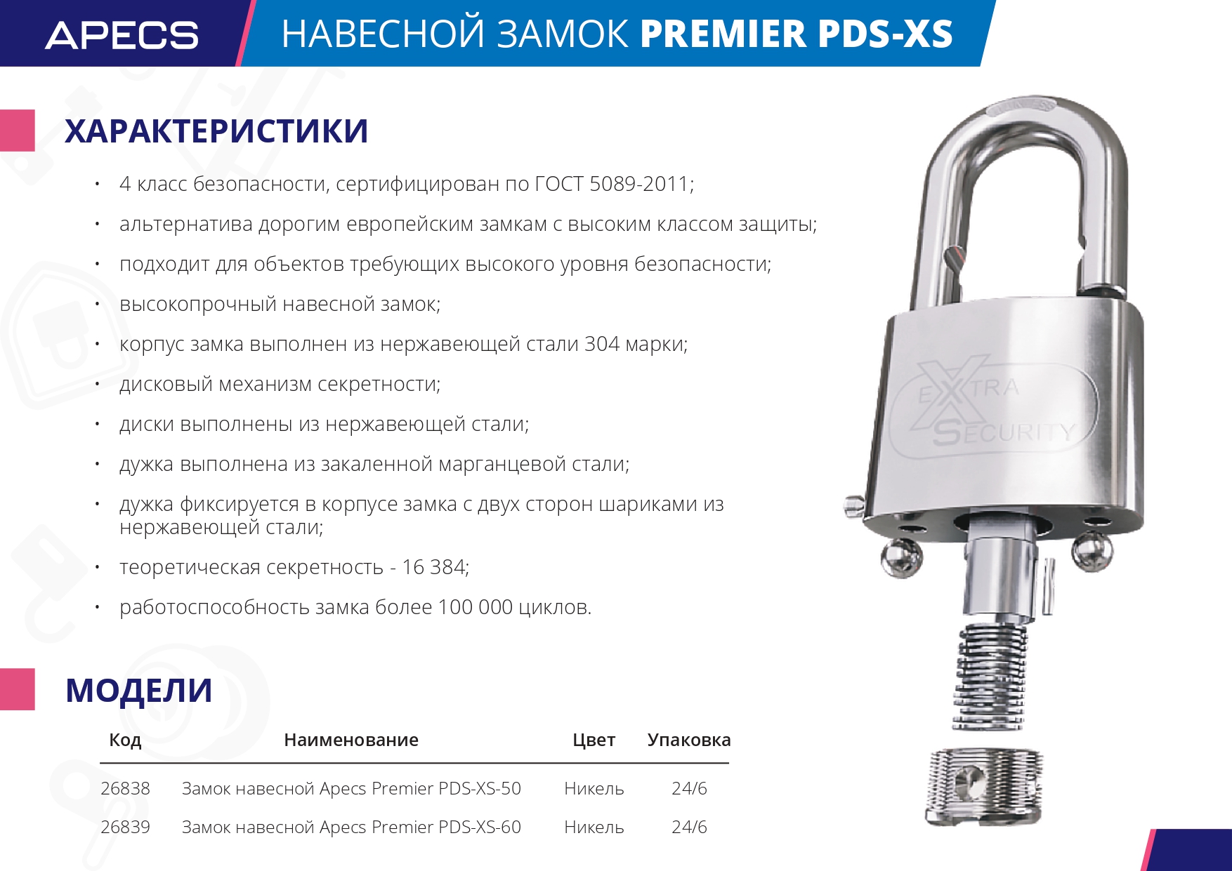 Замок навесной Apecs PDS-XS-60 УСИЛЕННЫЙ (НЕРЖАВЕЙКА (6/24)