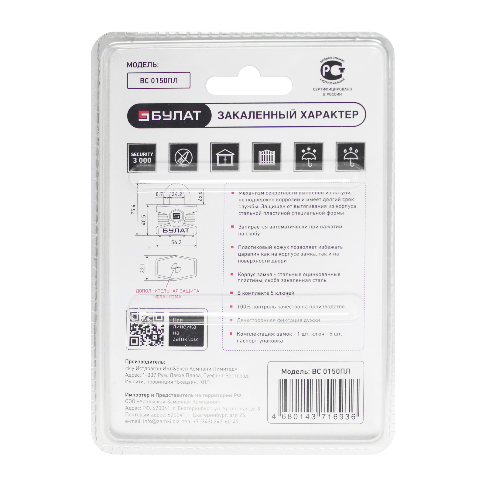 Замок навесной Булат 0150 (5 ключей) (6/36)