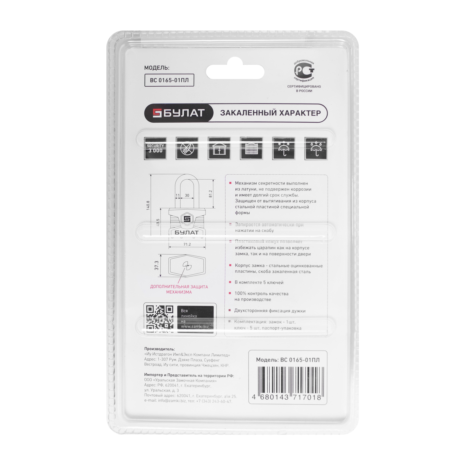 ВС БУЛАТ 0165-01 d=11мм Замок навесной (24/6)