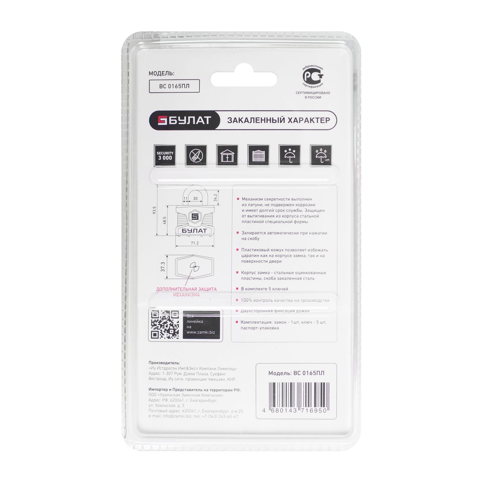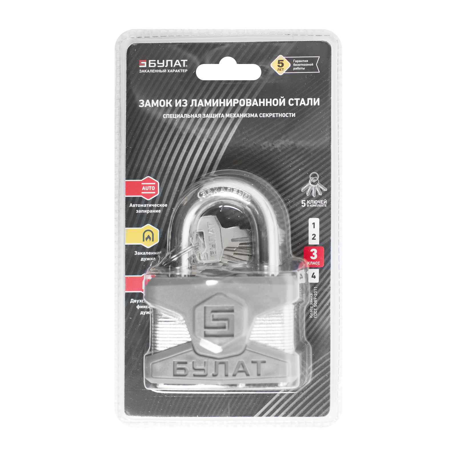 Замок навесной Булат 0165 (5 ключей) (6/24)