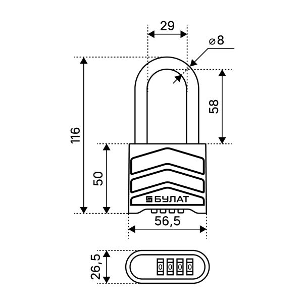 Замок навесной Булат 554-01 КОДОВЫЙ, длинная дужка (6/24)