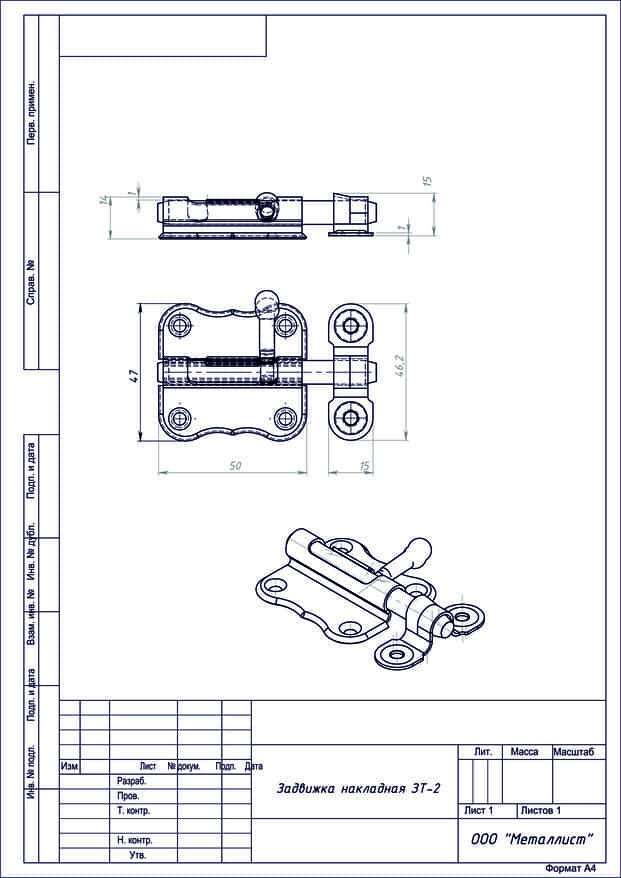 Задвижка накладная ЗТ2 цинк г.Кунгур (100)