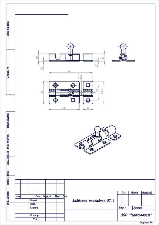 Задвижка накладная ЗТ4 цинк г.Кунгур (200)