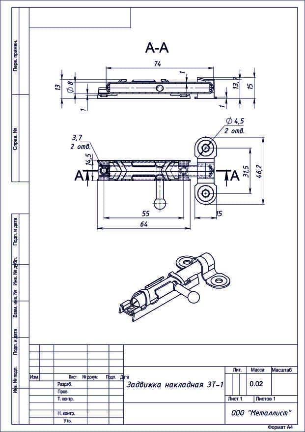 Задвижка накладная ЗТ-1 цинк (малая) г.Кунгур (200)