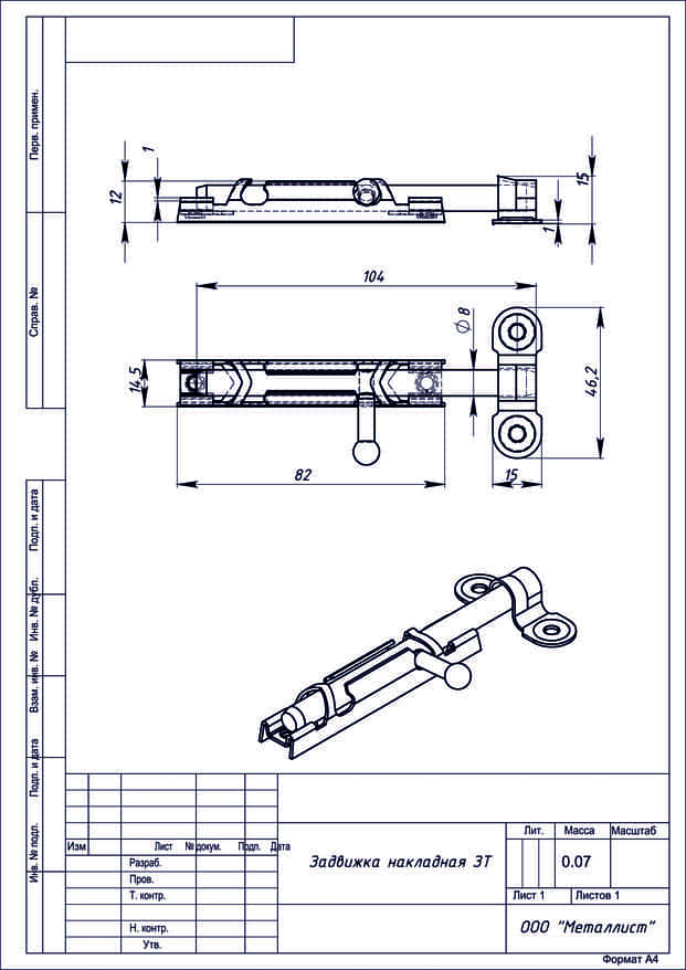 Задвижка накладная ЗТ цельный движок цинк (большая) г.Кунгур (150)