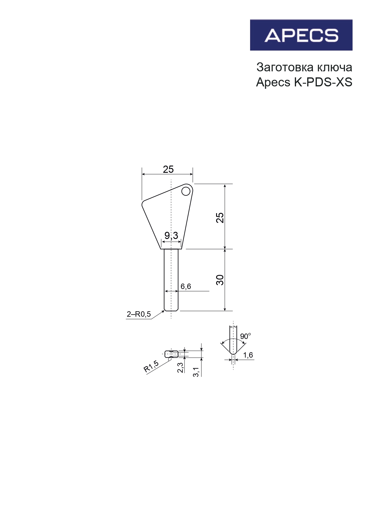Заготовка ключа Apecs K-PDS-XS