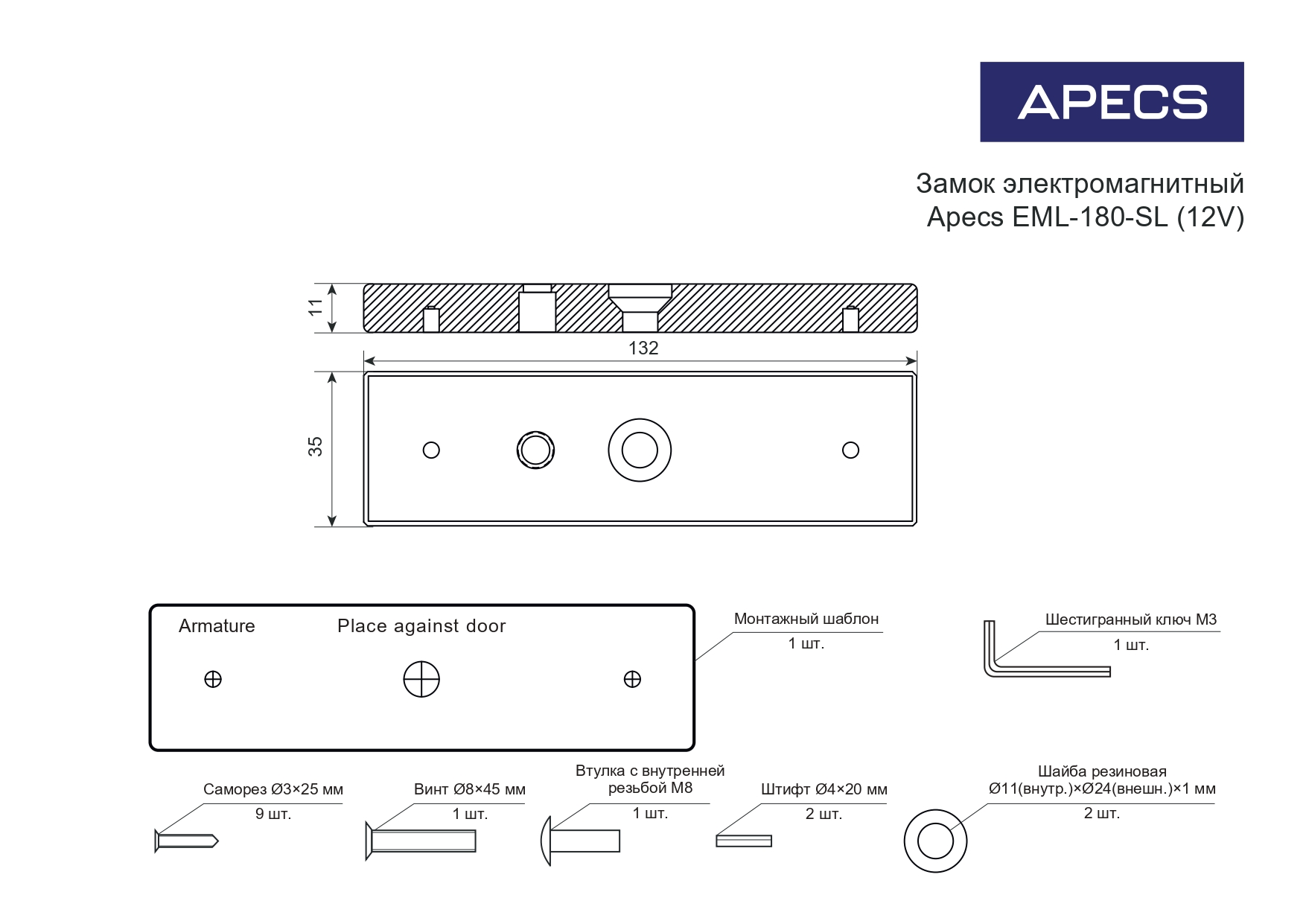 Замок электромагнитный Apecs EML-180-SL (12V)