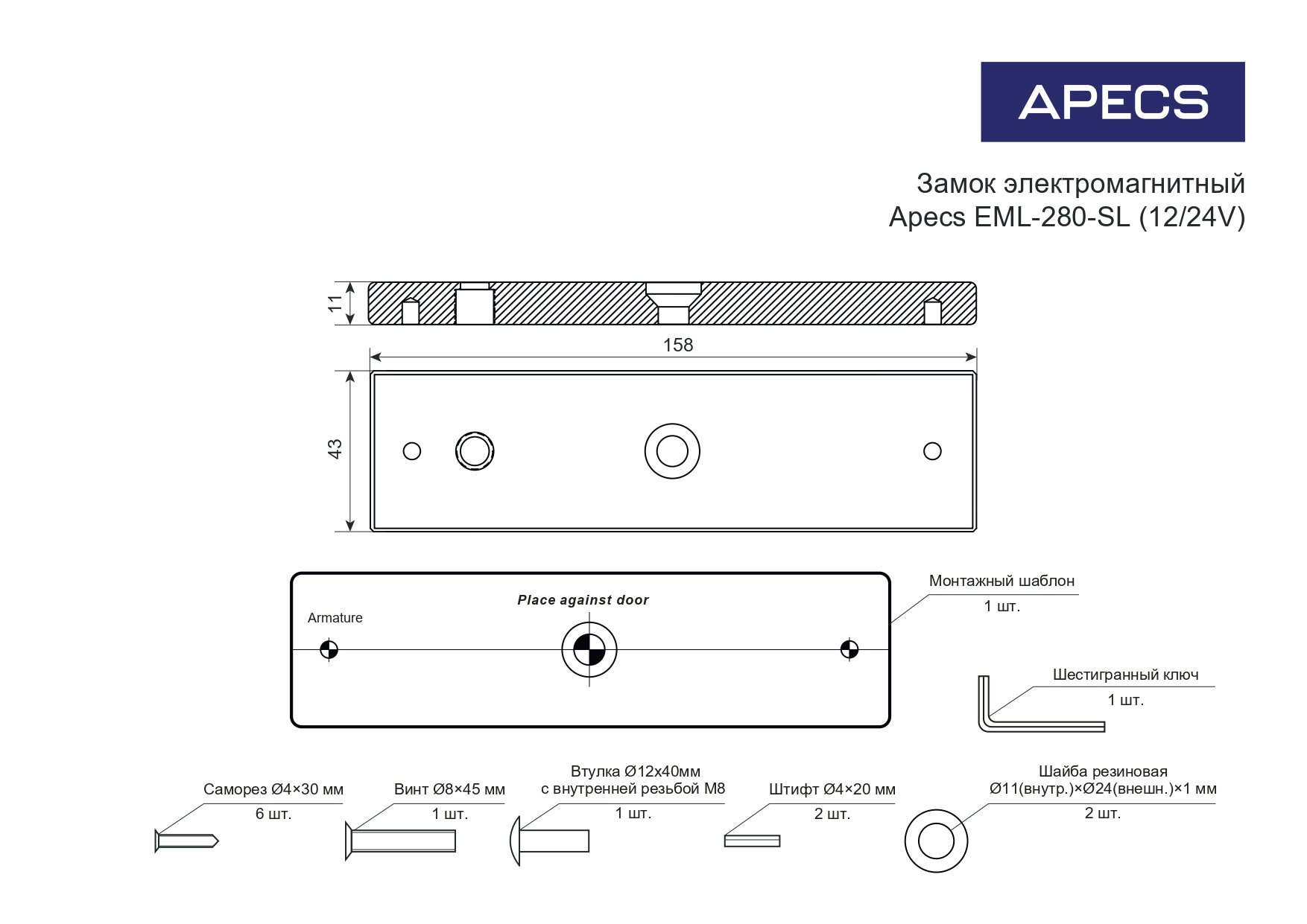Замок электромагнитный Apecs EML-280-SL (12/24V)