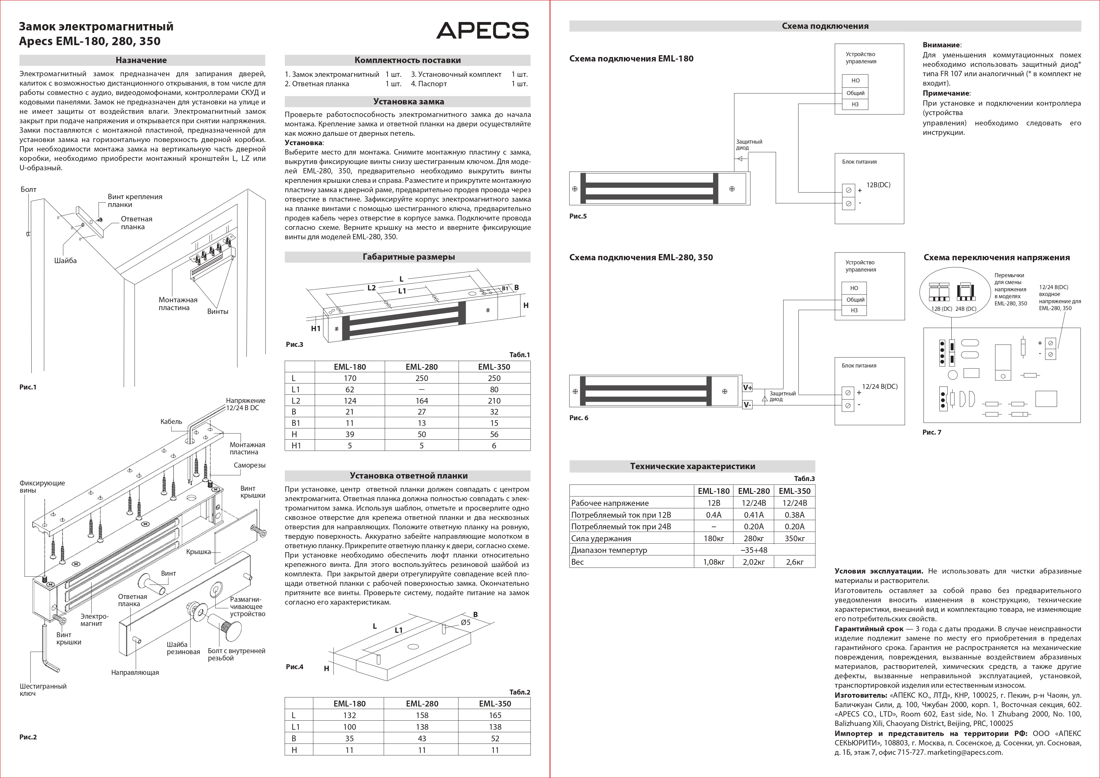 Замок электромагнитный Apecs EML-350-SL (12/24V)
