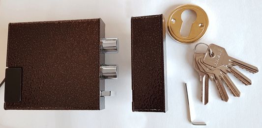 Отличительными чертами данного замка являются отсутствие видимого крепежа и покрытие рабочих элементов хромом.