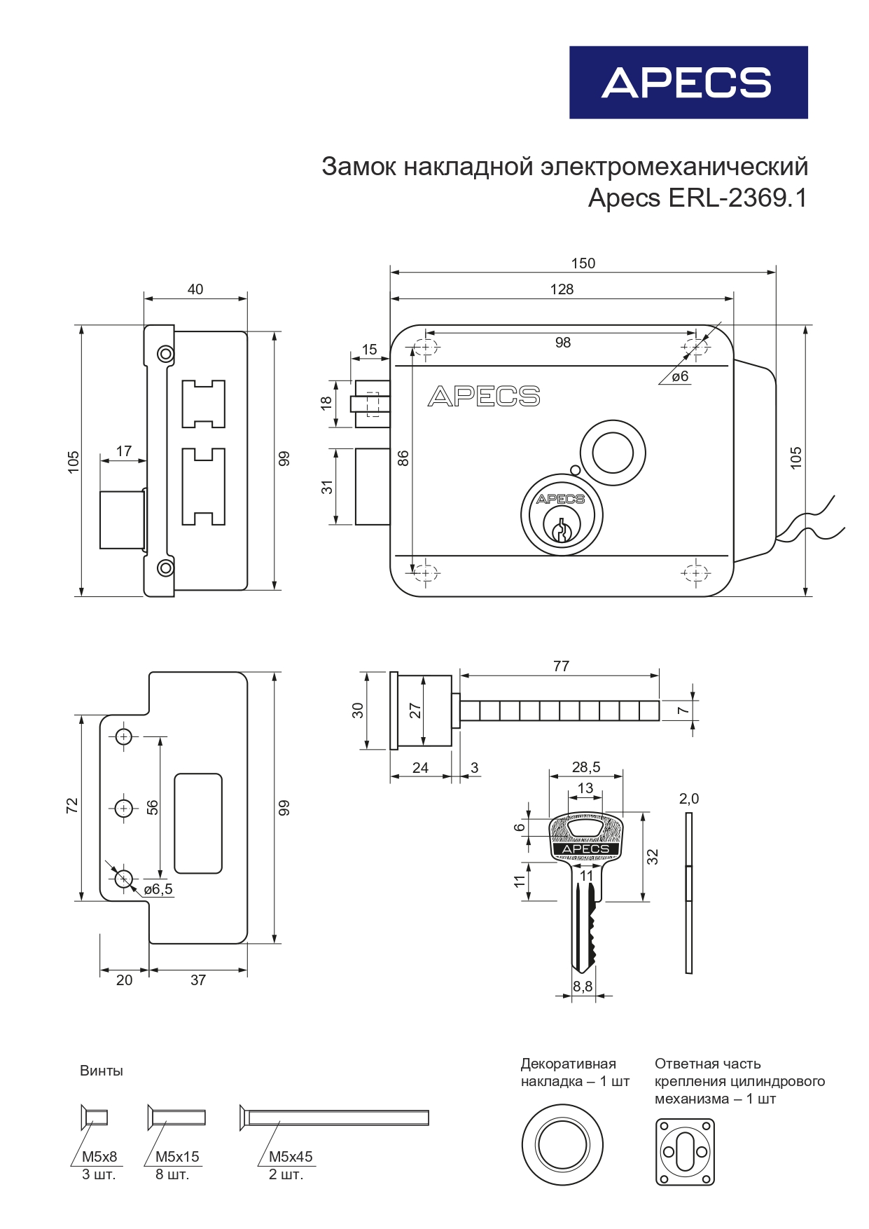 Замок накладной электромеханический Apecs ERL-2369.1-INOX-R нержавейка (правый)