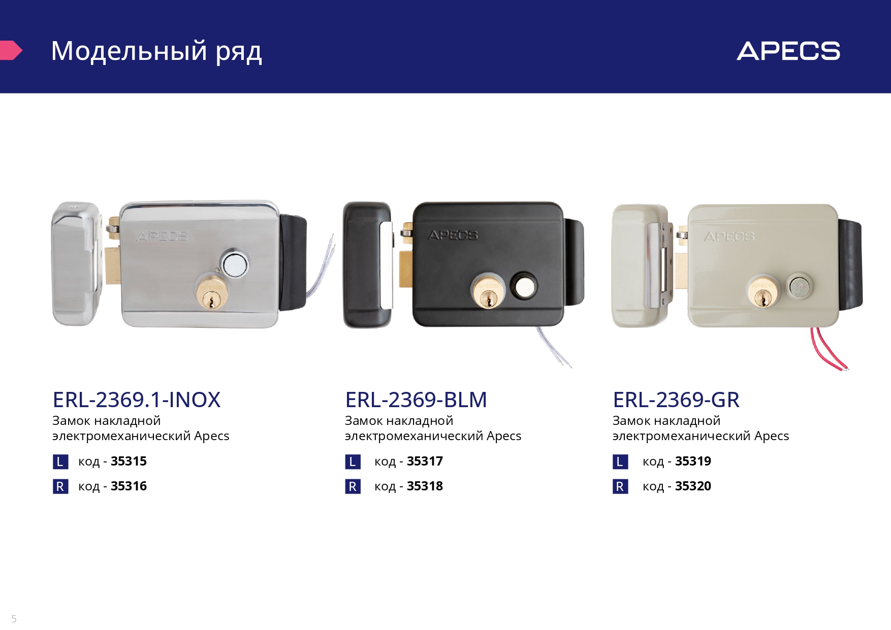 Замок накладной электромеханический Apecs ERL-2369-BLM-L (левый)