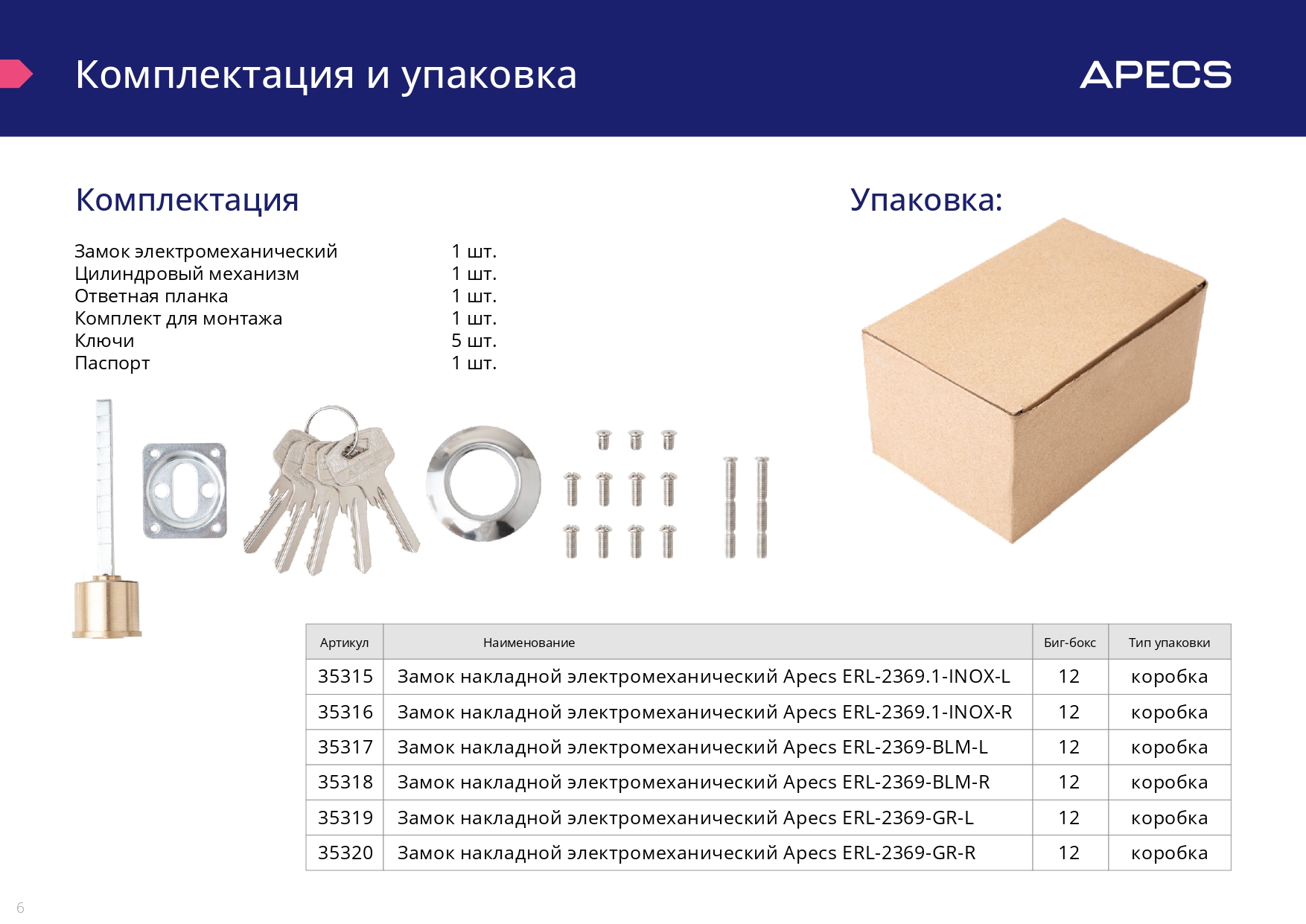 Замок накладной электромеханический Apecs ERL-2369-GR-R (правый)