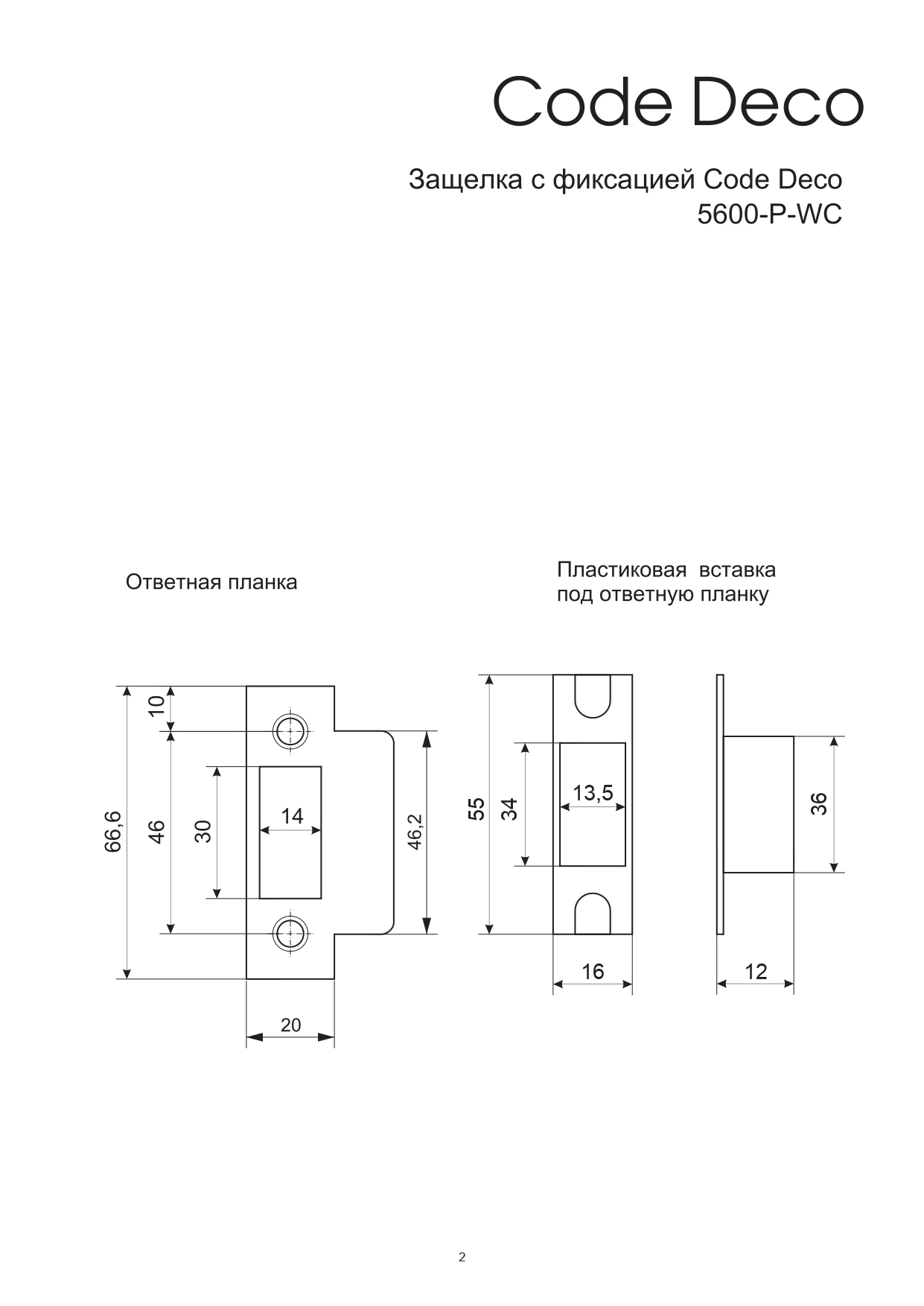 Защелка дверная металлическая с фиксацией Code Deco 5600-WC-CR (хром) (50)