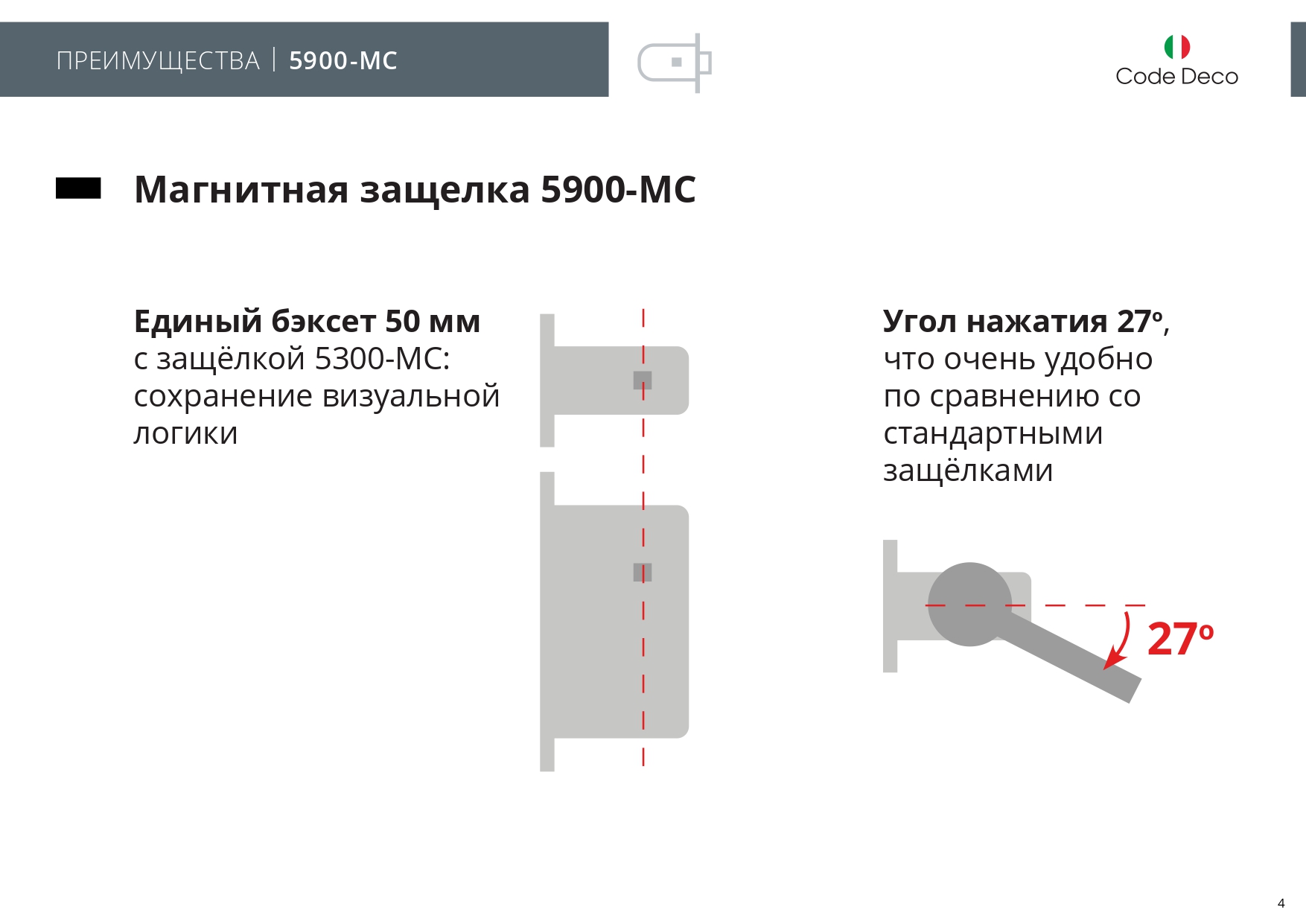 Магнитные защёлки без фиксации. Предназначены для межкомнатных дверей без запирания. 250 000 циклов безотказной работы. Угол нажатия ручки: 27 градусов. Устанавливаются в межкомнатные деревянные двери совместно с дверными ручками.