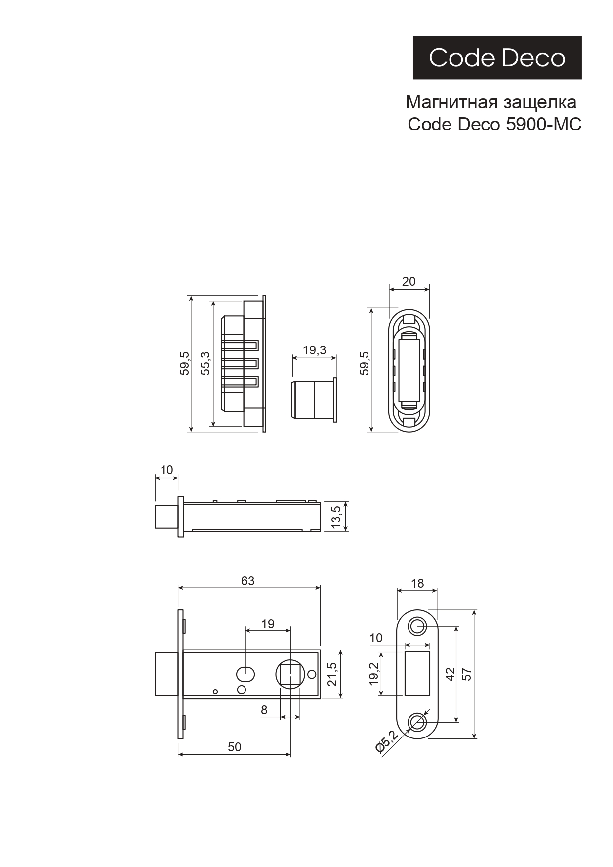 Защёлка магнитная Code Deco 5900-MC-GRF (графит) (20/100)