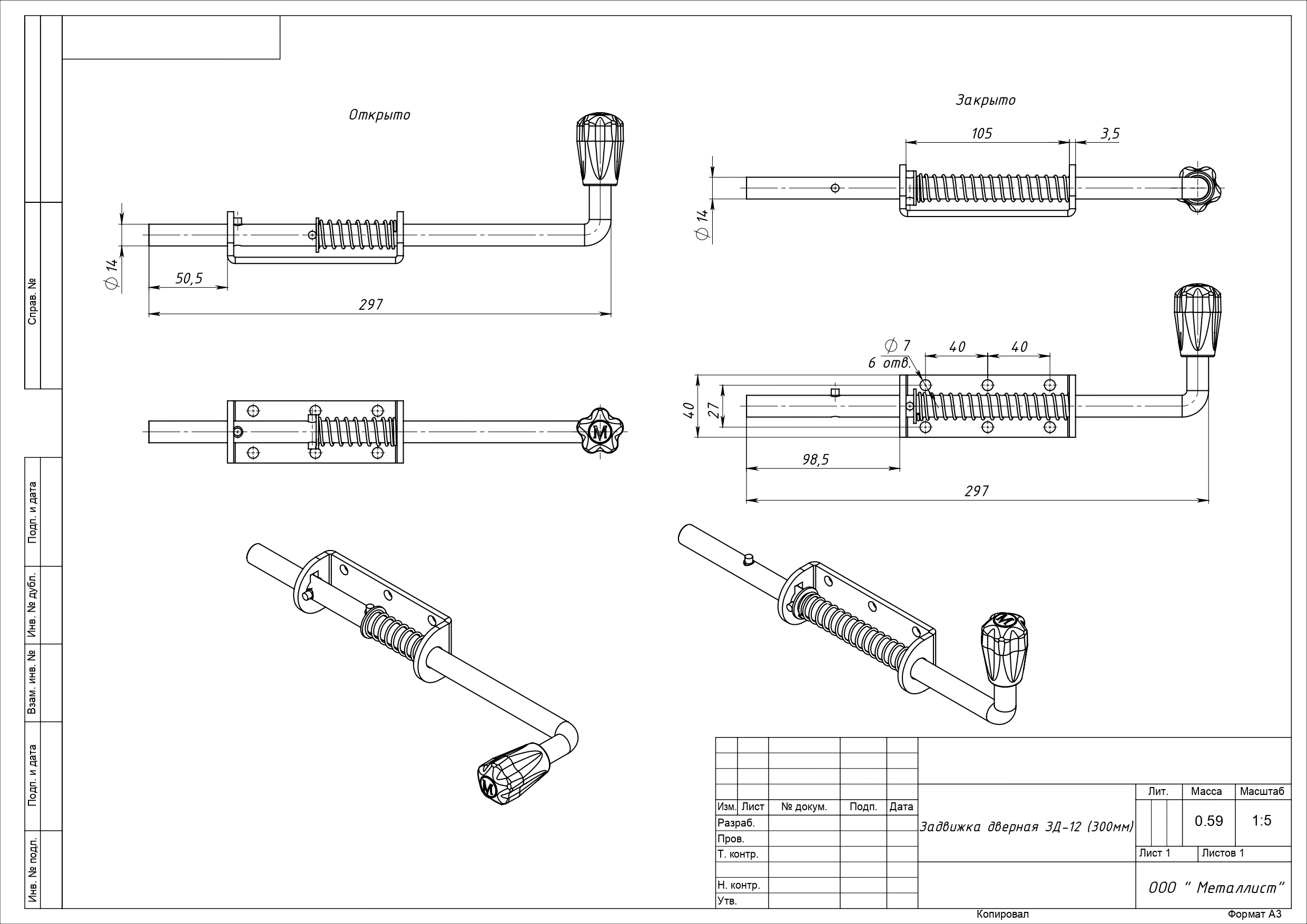 Засов с пружиной ЗД-12 (300мм) цинк г.Кунгур (10)