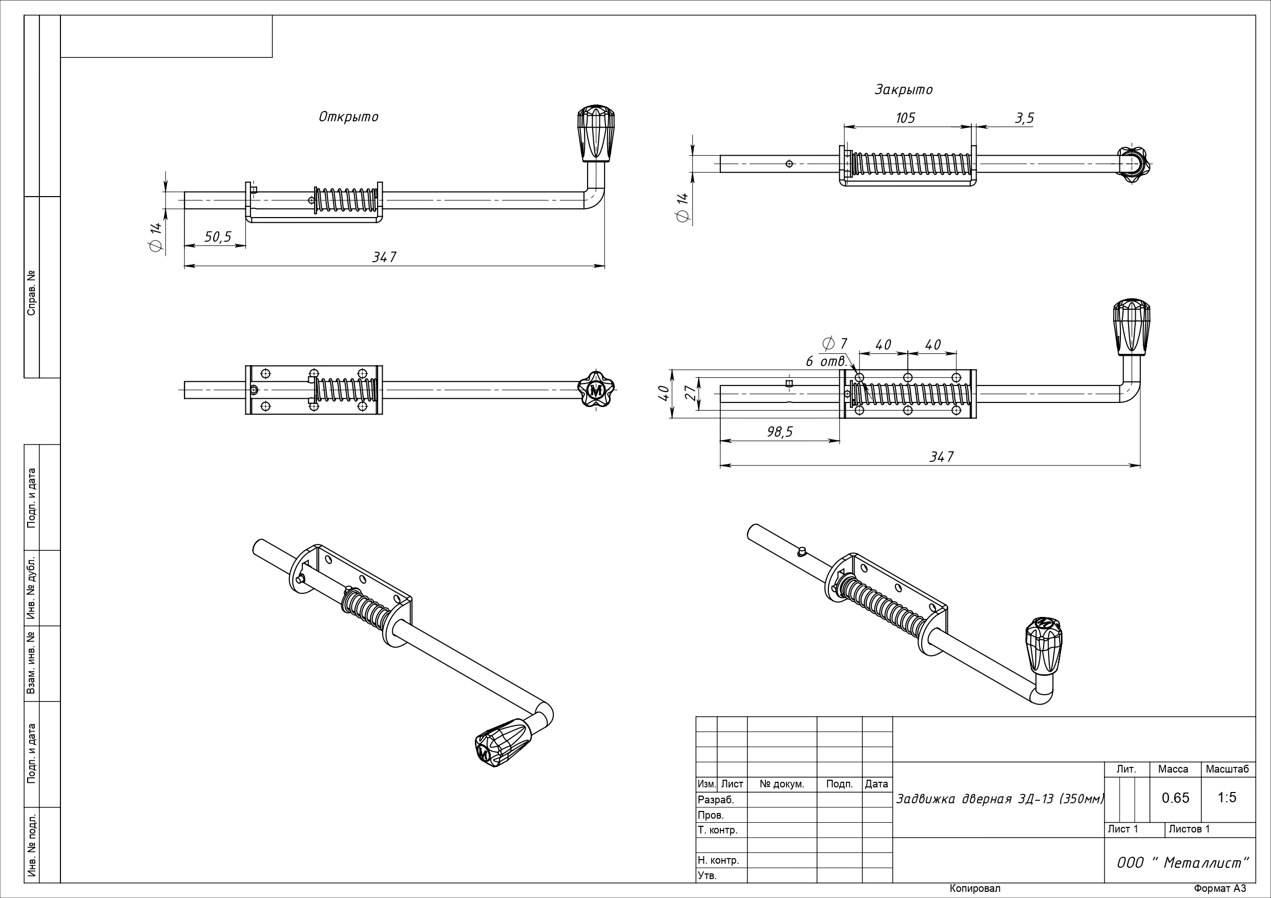 Засов с пружиной ЗД-13 (350мм) цинк г.Кунгур (10)