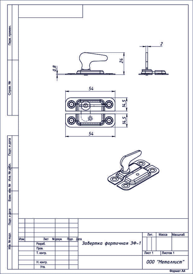 Завертка накладная ЗФ-1 цинк г.Кунгур (200)