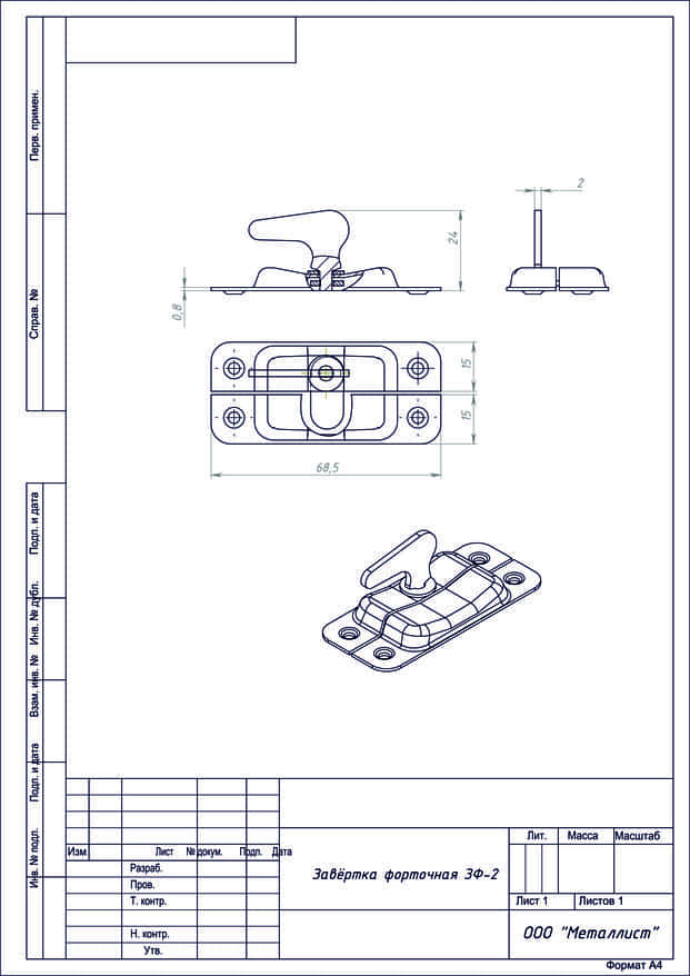 Завертка накладная ЗФ-2 цинк г.Кунгур (200)