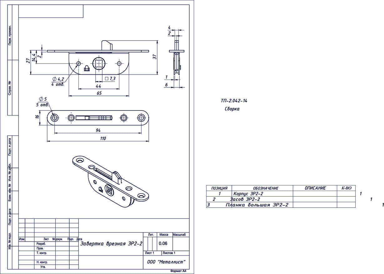 Завертка врезная ЗР2-2 цинк с планкой г.Кунгур (100)